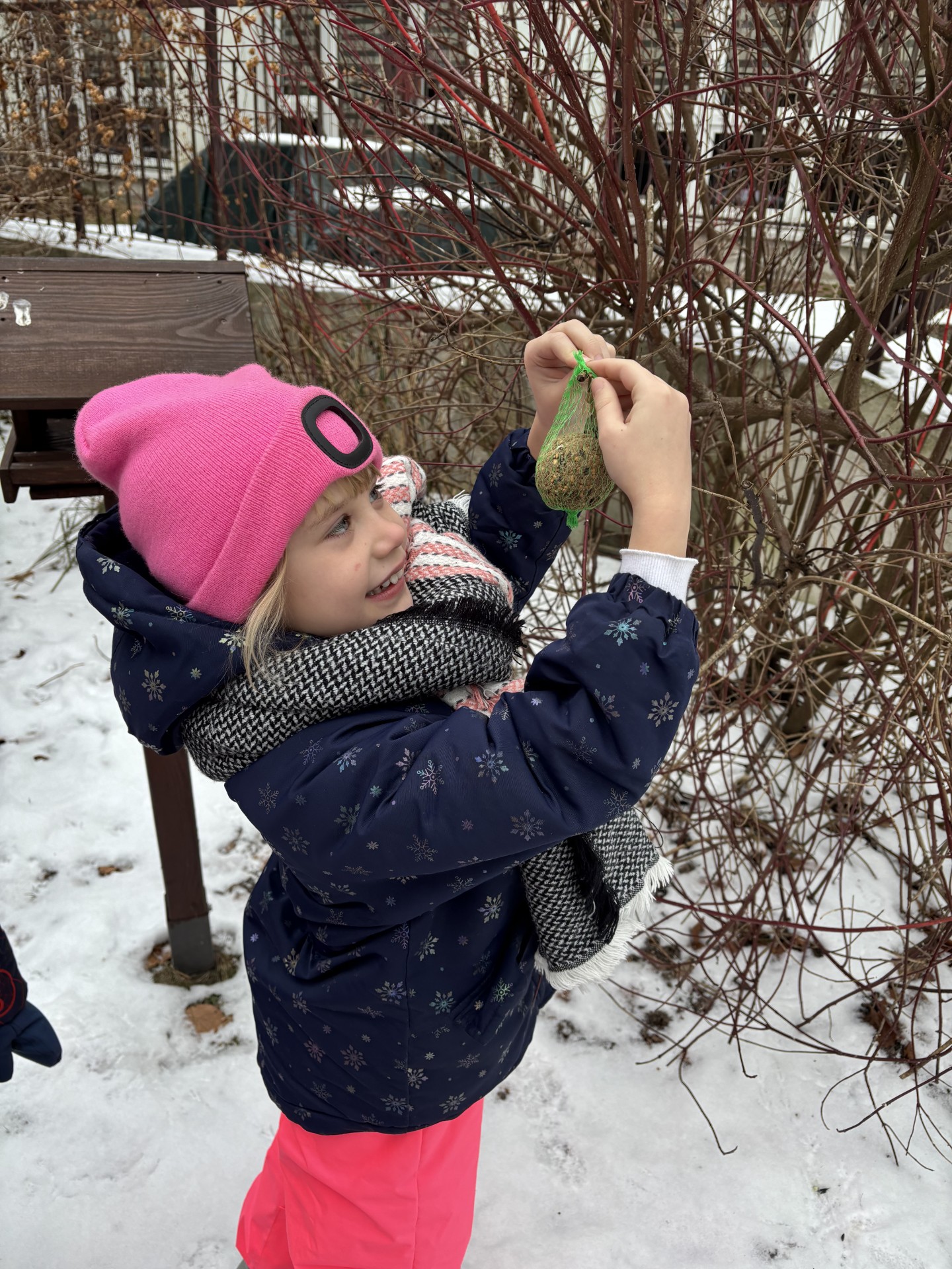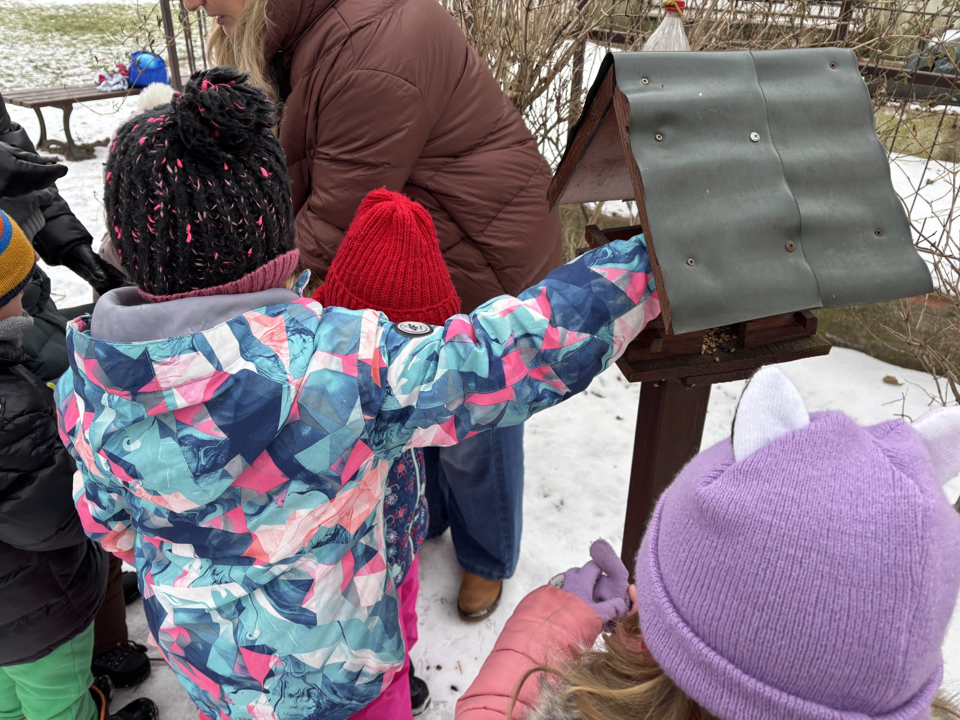 30 stycznia w ogrodzie dokarmialiśmy ptaki. W każdym karmniku znalazły się nasionka dla naszych skrzydlatych przyjaciół, zawiesiliśmy również tłuszczowe kule. Będziemy dbać o ptaki, szczególnie zimą.