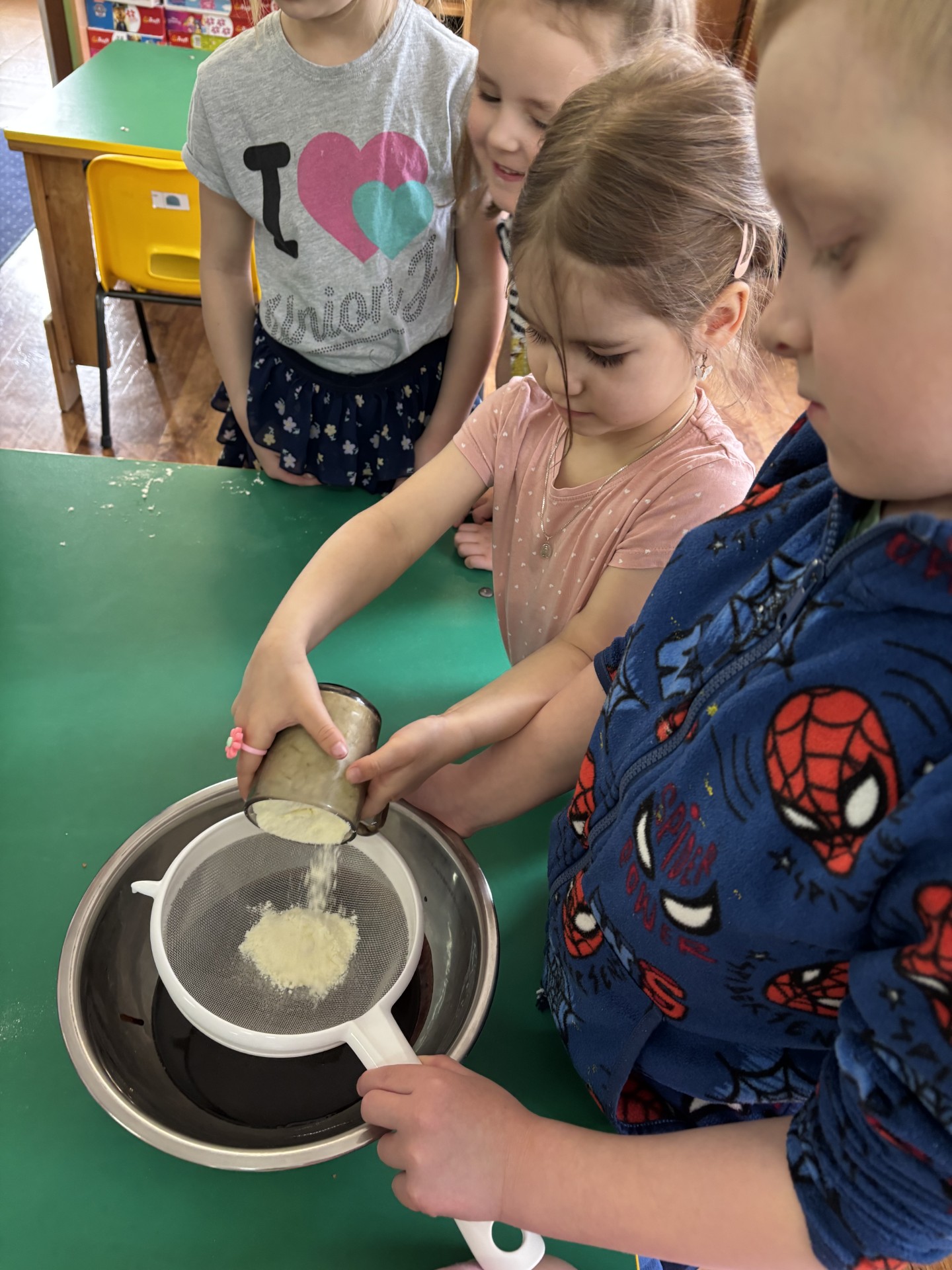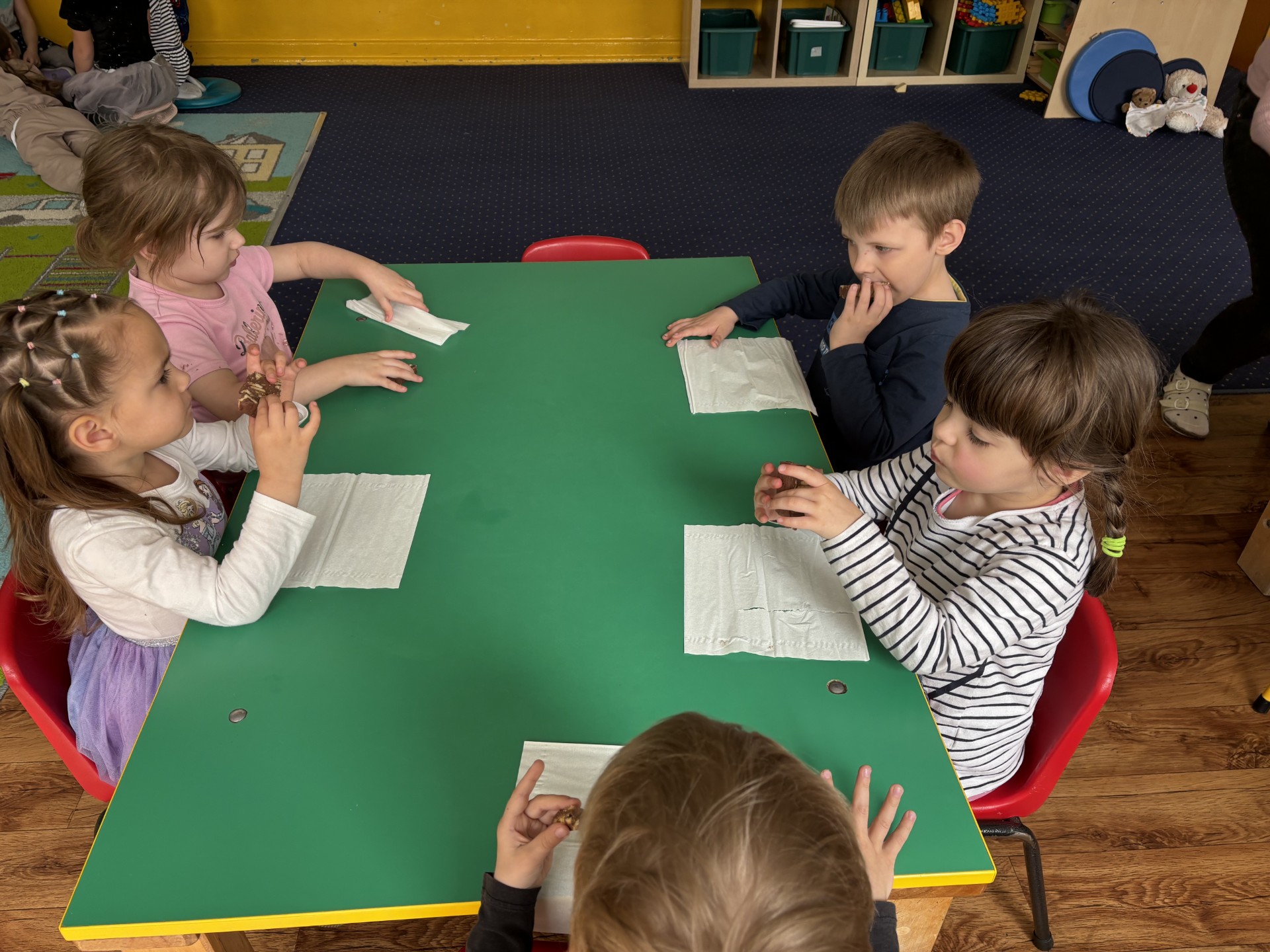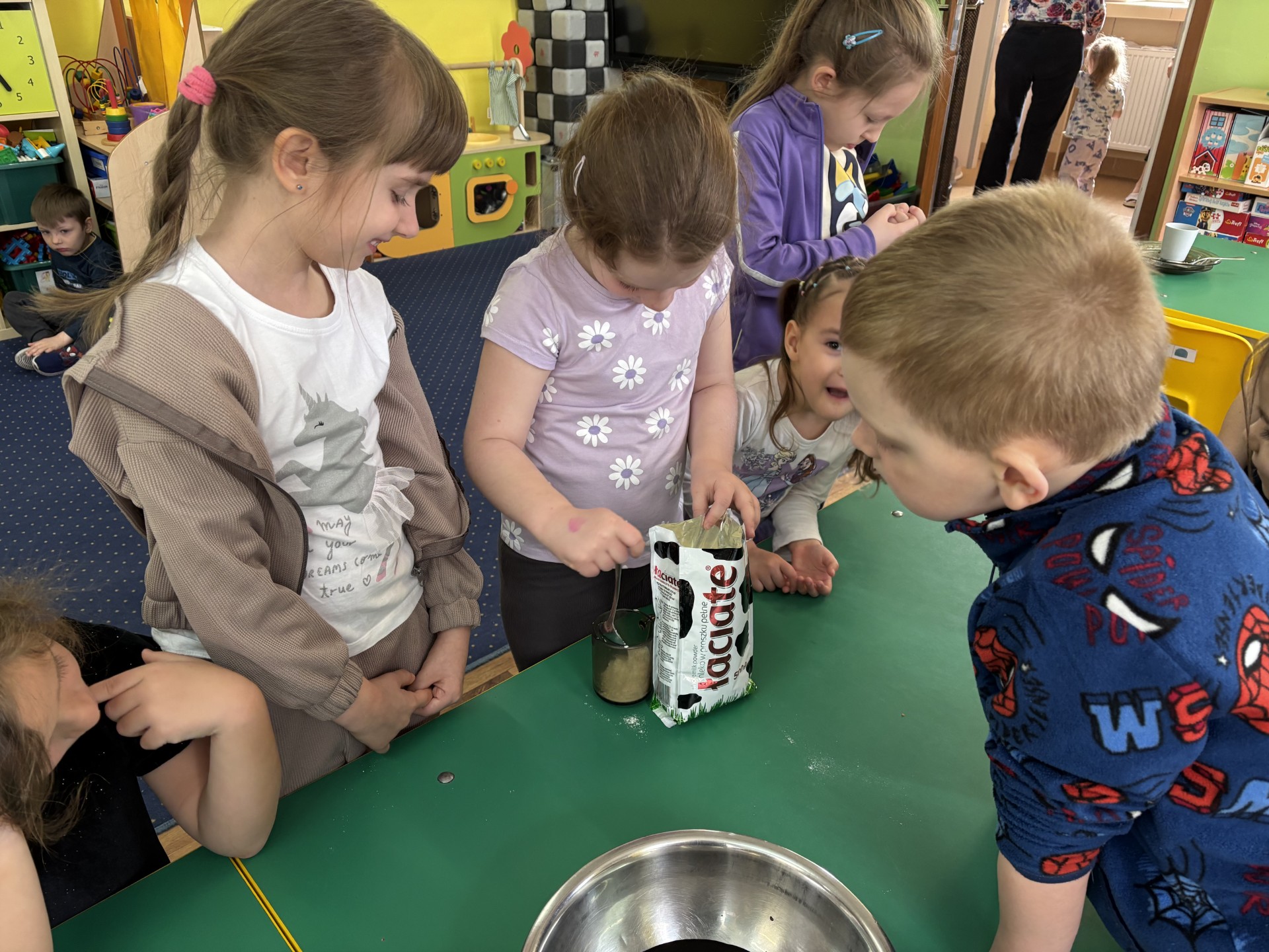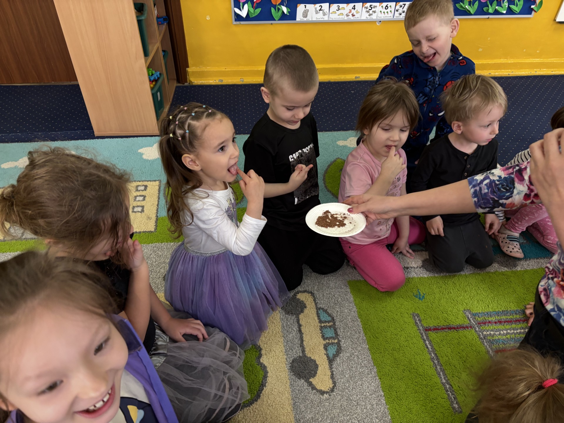 13 kwietnia obchodziliśmy "Dzień czekolady". Poznaliśmy historię tego słodkiego przysmaku. Smakowaliśmy kakao i inne składniki, które wchodzą w skład bloku czekoladowego i który sami zrobiliśmy. Po obiedzie nastąpiła degustacja. To był bardzo słodki dzień!