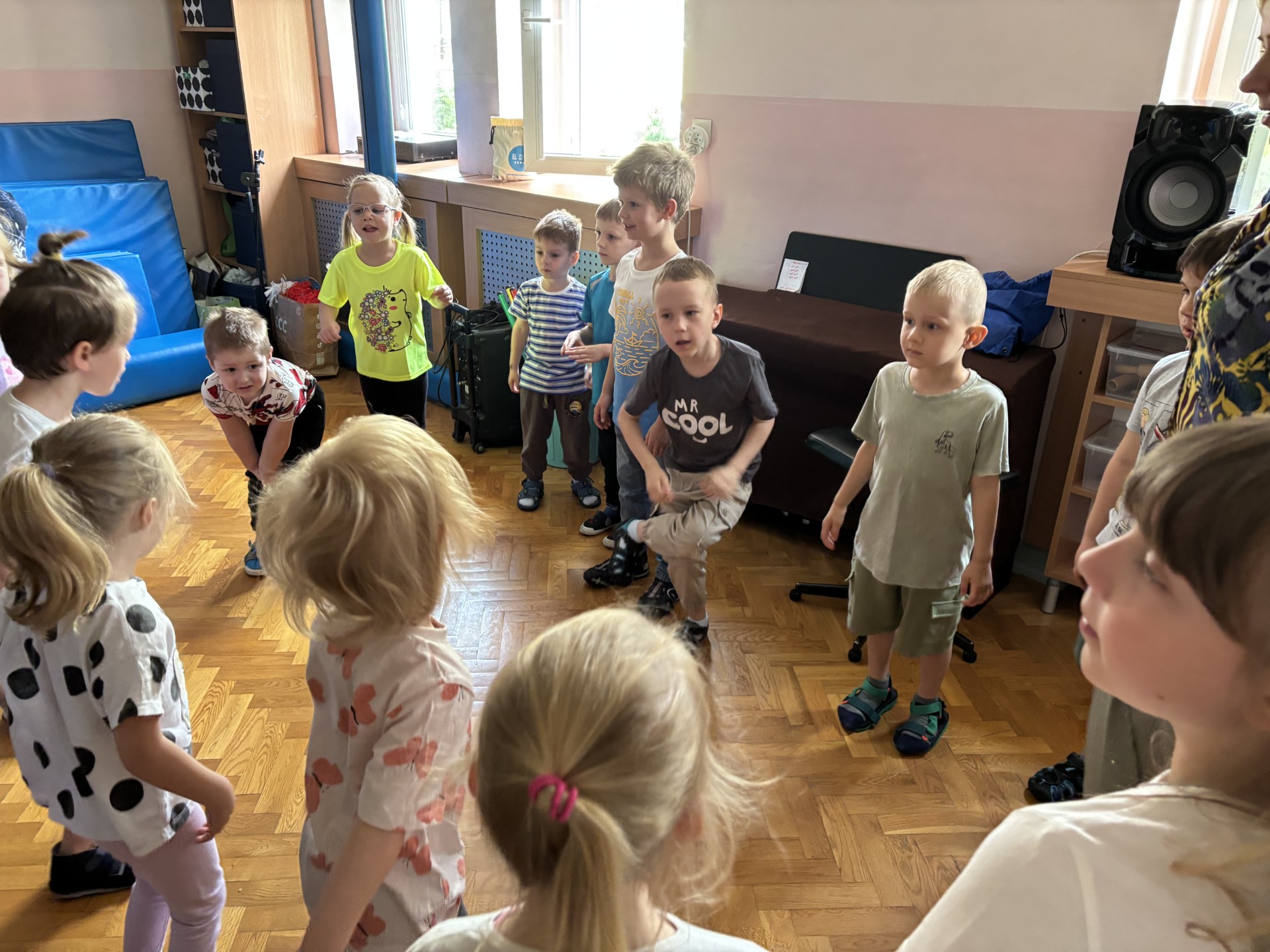 2 czerwca wszyscy zgromadziliśmy się na sali gimnastycznej wraz z przybyłymi gośćmi z klasy I szkoły przy ul. Karolewskiej. Tam bawiliśmy się przy muzyce. To był bardzo wesoły dzień.