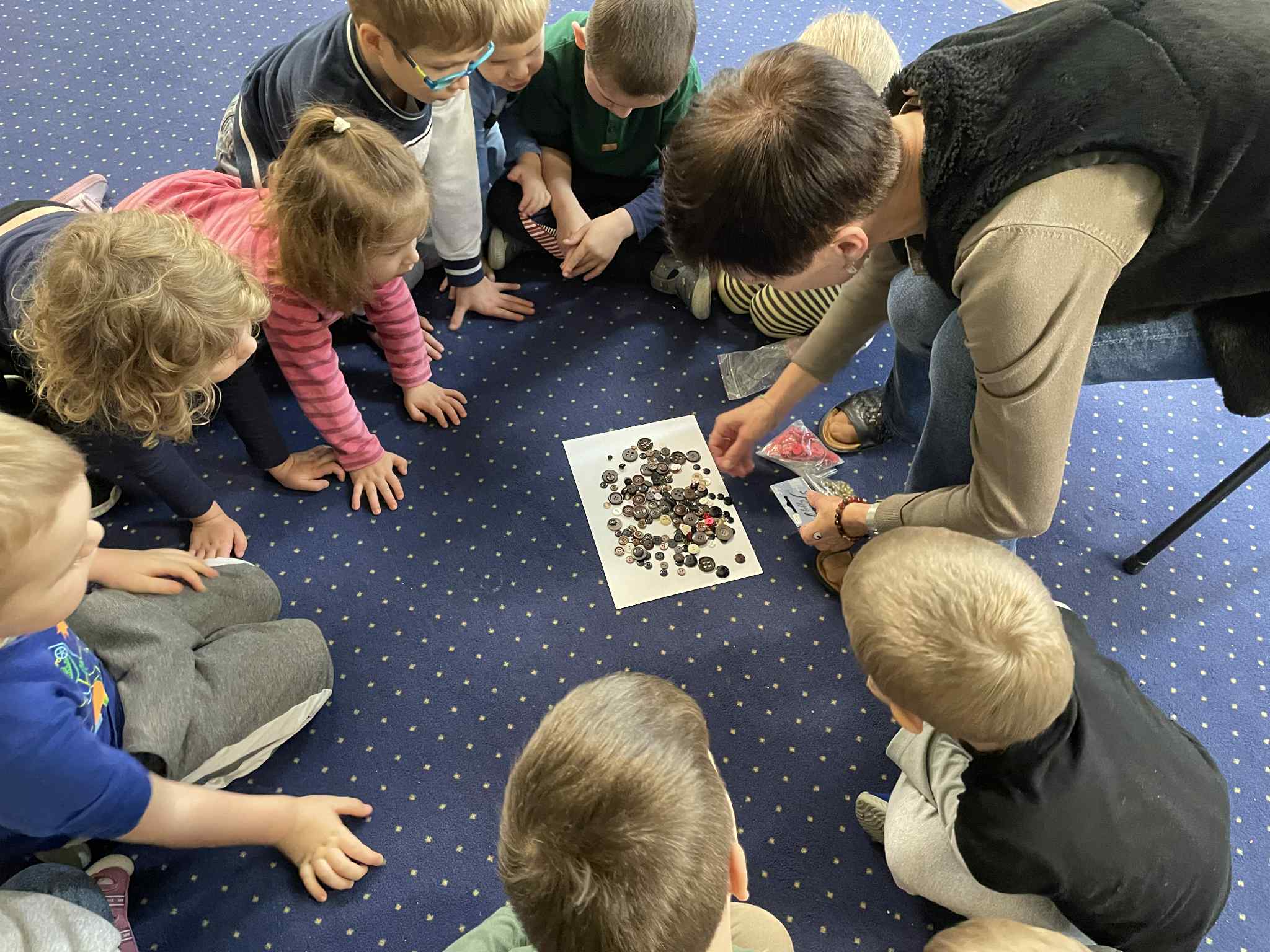 11 grudnia dzieci z grupy lll obchodziły Dzień Guzika. Poznały zastosowanie guzików i ich różnorodność. Określały ich kształt, kolor i wielkość. Tworzyły kompozycje i wzory z guzików. Na koniec lepiły guziki z masy solnej, malowały je i ozdabiały wstążka.