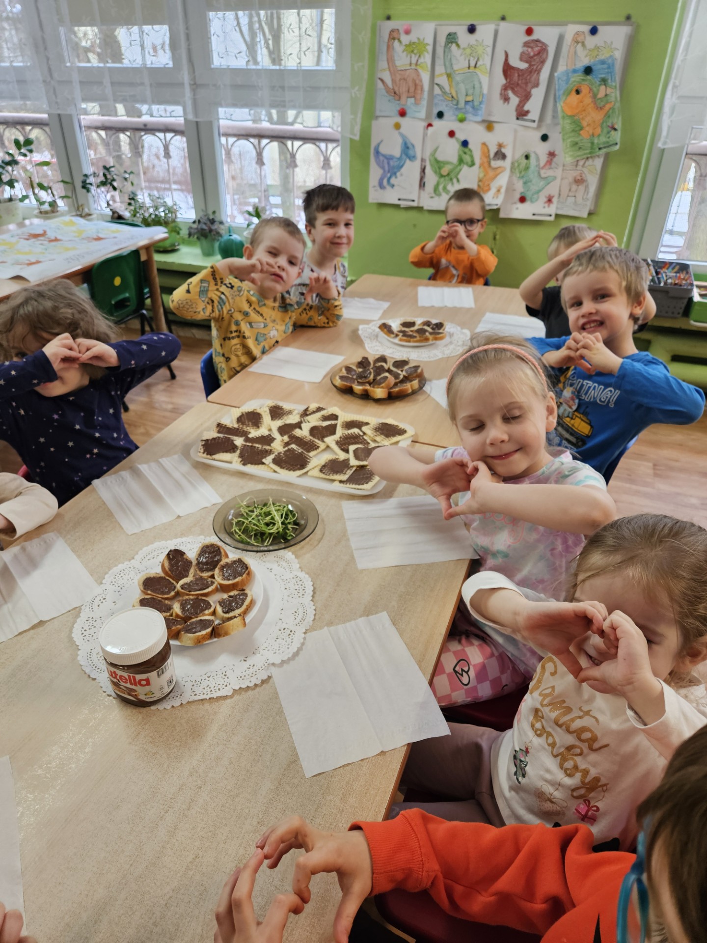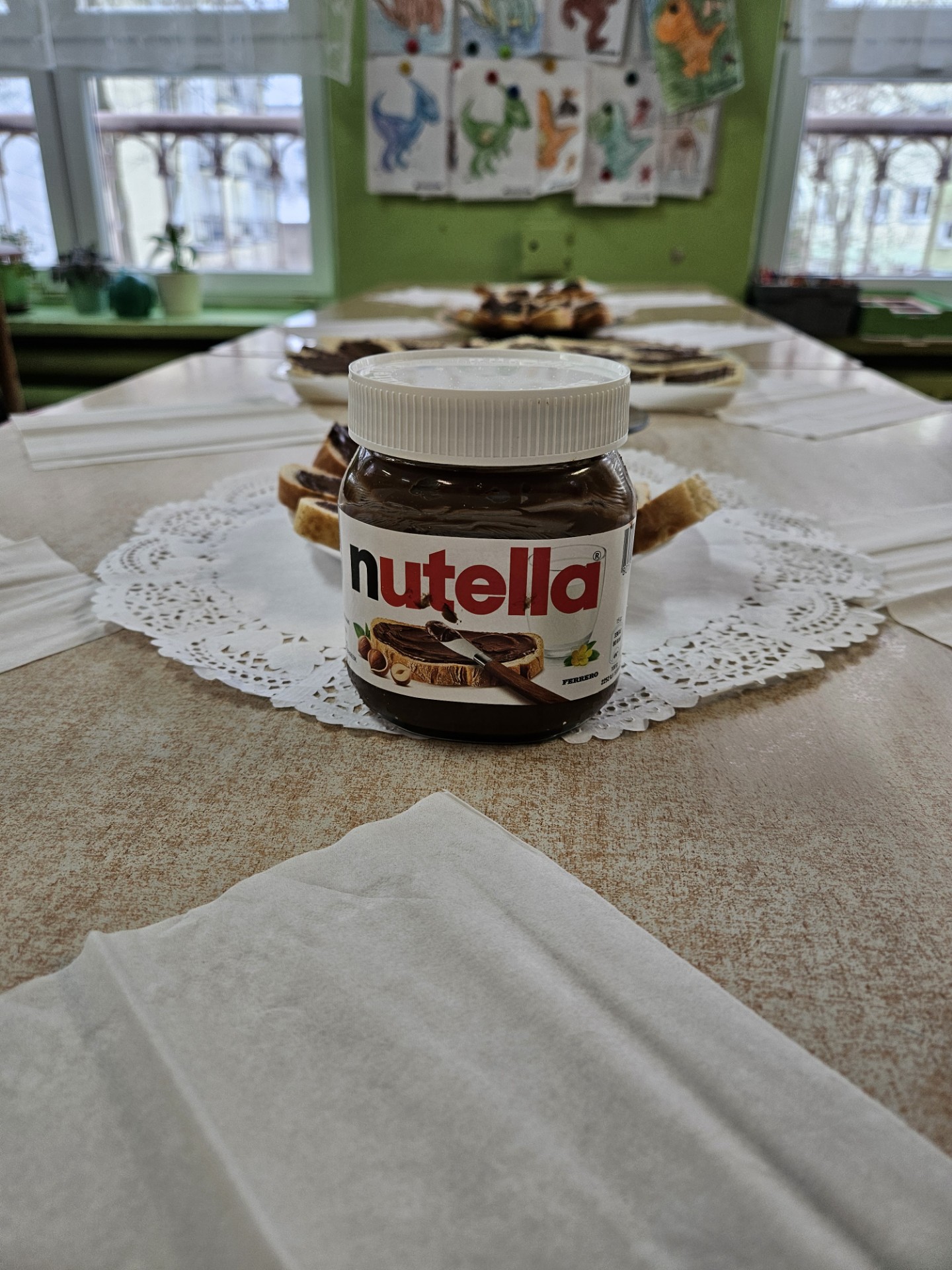 5 lutego dzieci z grupy lll obchodziły Dzień Nutelli. Z tej okazji obejrzały film edukacyjny jak powstaje ten smakołyk i z jakich składników się składa. Następnie przedszkolaki kolorowały obrazki konturowe przedstawiające Nutellę a na koniec odbyła się degustacja tego kremu z pieczywem.