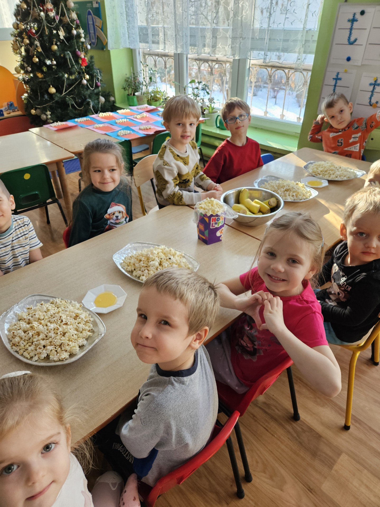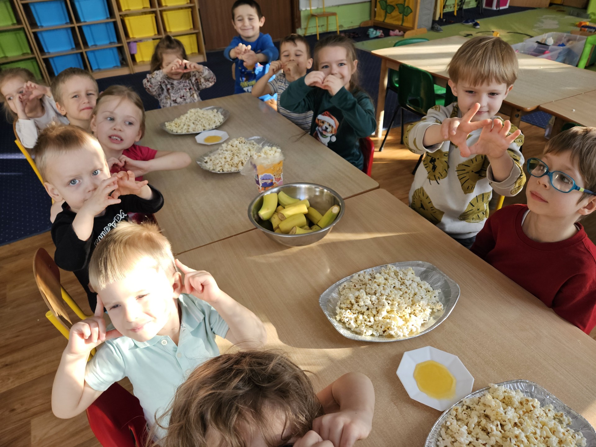 19 stycznia dzieci z grupy lll obchodziły Dzień Popcornu. Z tej okazji przyniosły do przedszkola Popcorn, obejrzały film edukacyjny pt. ,,Ciekawostki o Popcornie'' I wykonały pracę plastyczną pt. ,,Kubek z Popcornem''. Na koniec Dnia Popcornu dzieci degustowały Popcorn na różne sposoby - polany miodem i z odrobiną soli.