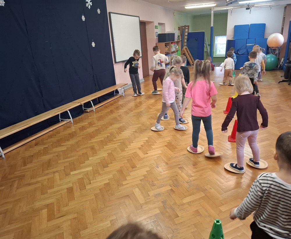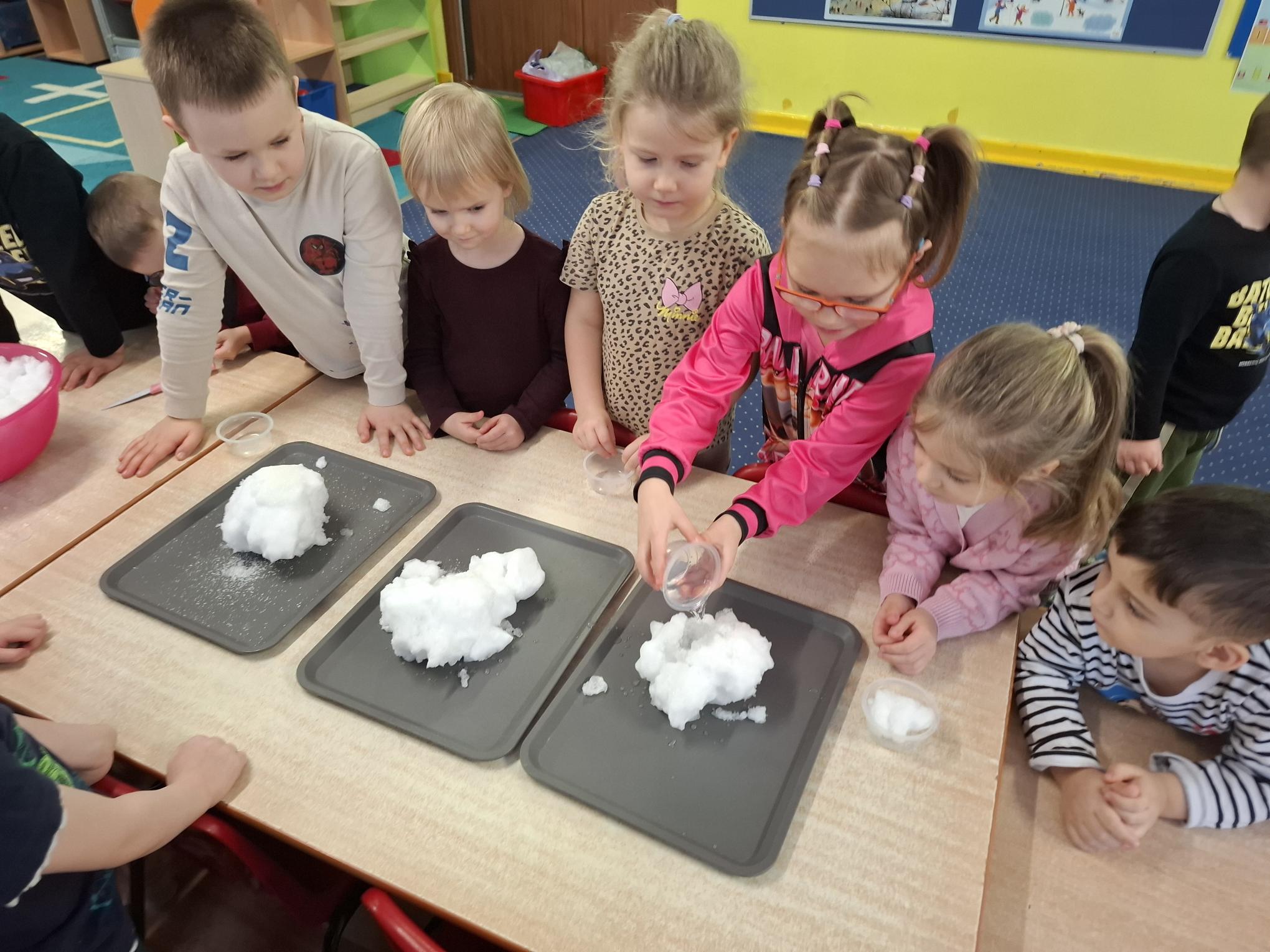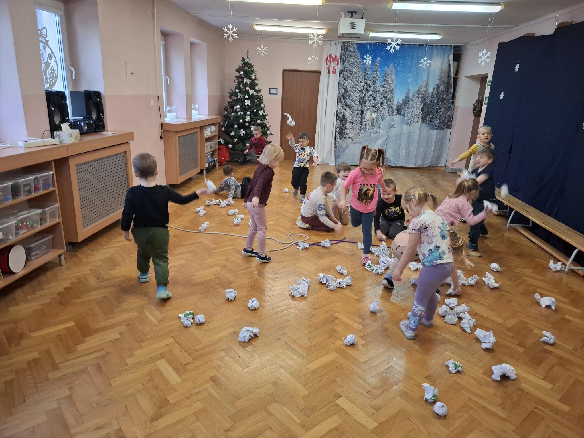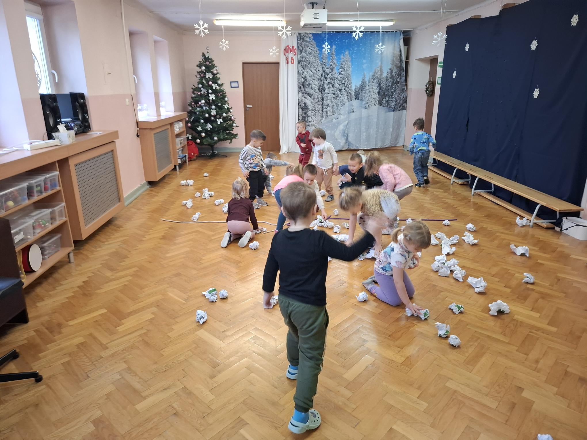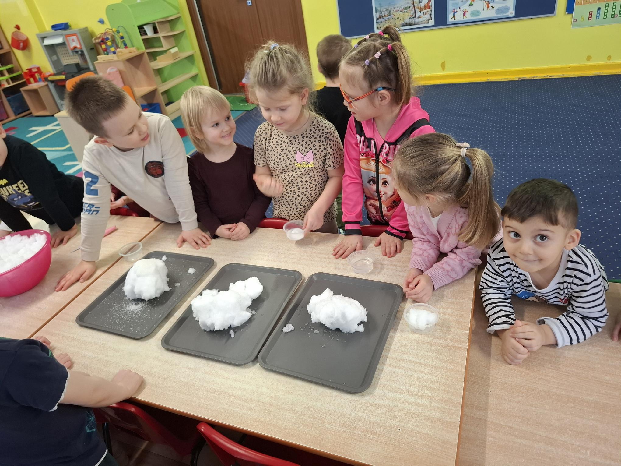 Zajęcia poświęcone były tematyce zimowej i śniegu. Dzieci uczestniczyły w zabawach ruchowych doświadczeniach pracy plastycznych inspirowanych zimą. Zajęcia sprzyjały integracji grupy, rozwijały sprawność ruchową, kreatywność i wyobraźnię dzieci.