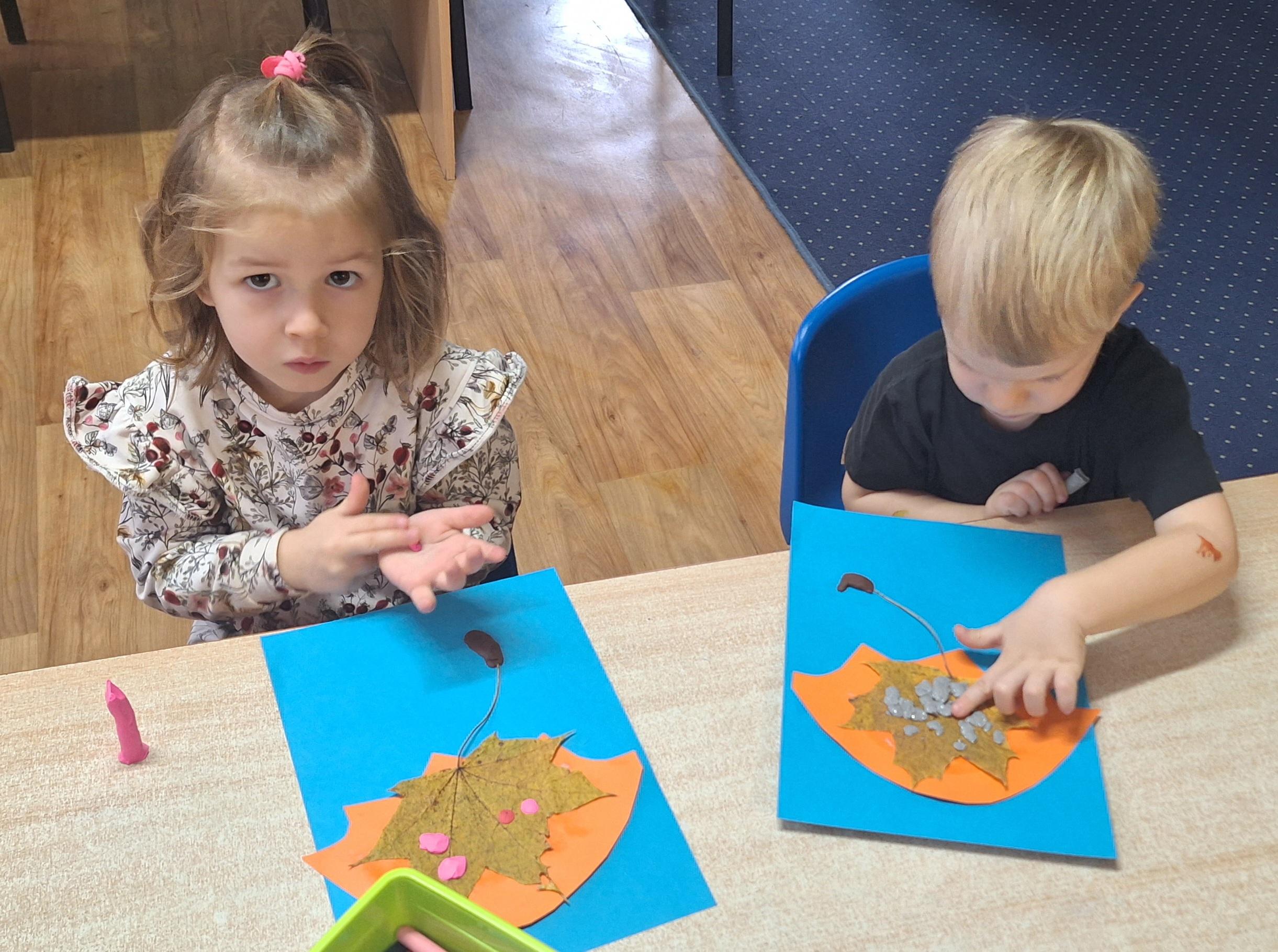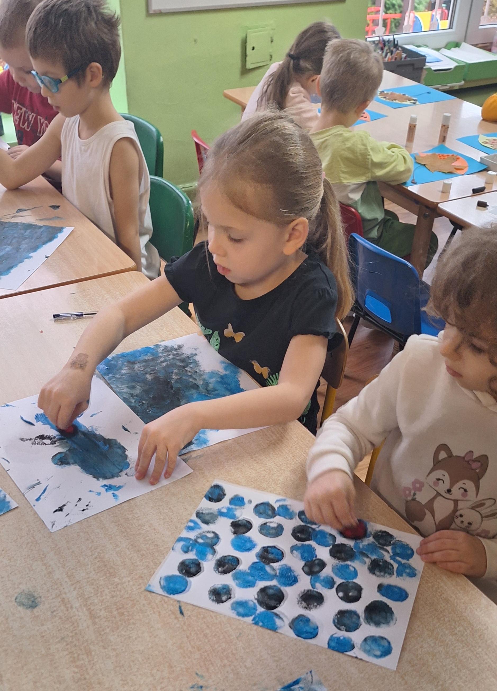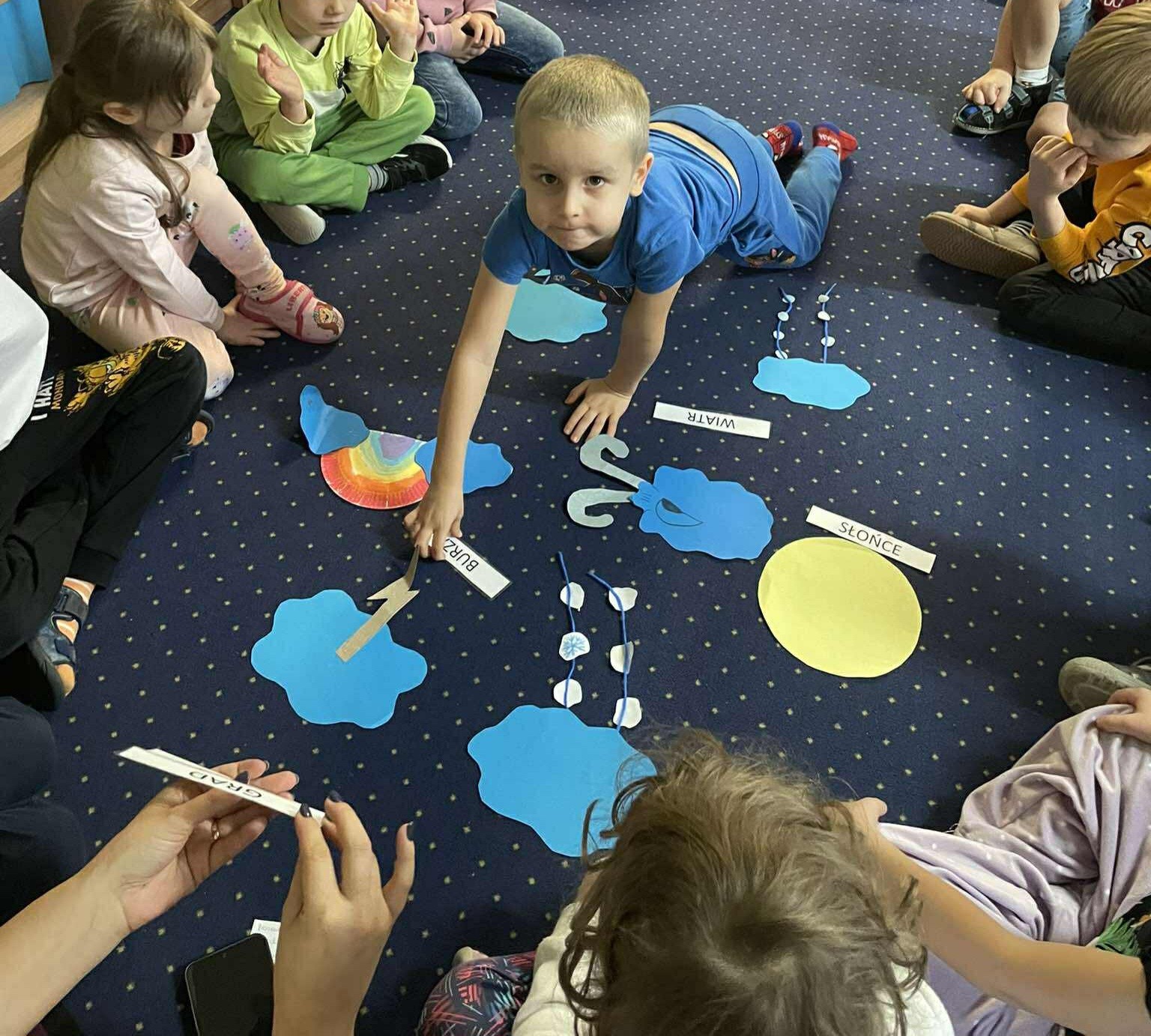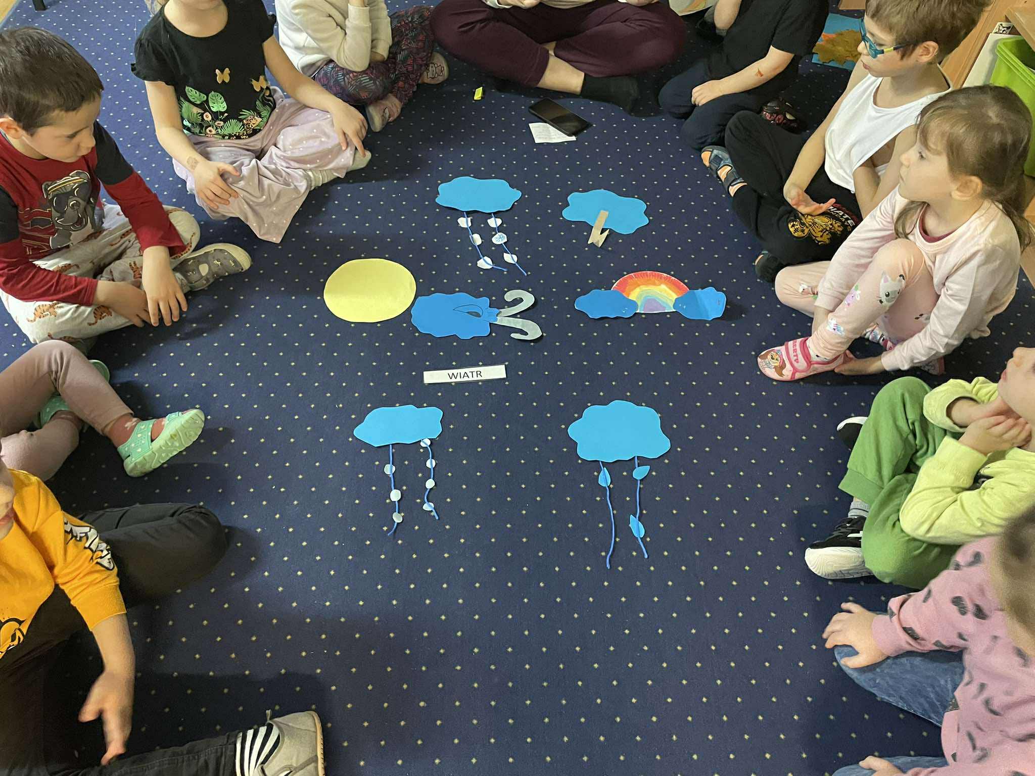 W bieżącym tygodniu rozmawialiśmy o jesiennej pogodzie. Codziennie określaliśmy aktualną pogodę, zaznaczając odpowiednie symbole w naszym kalendarzu, uczyliśmy się deszczowych piosenek, tworzyliśmy prace plastyczne oraz poznaliśmy literę "M, m".