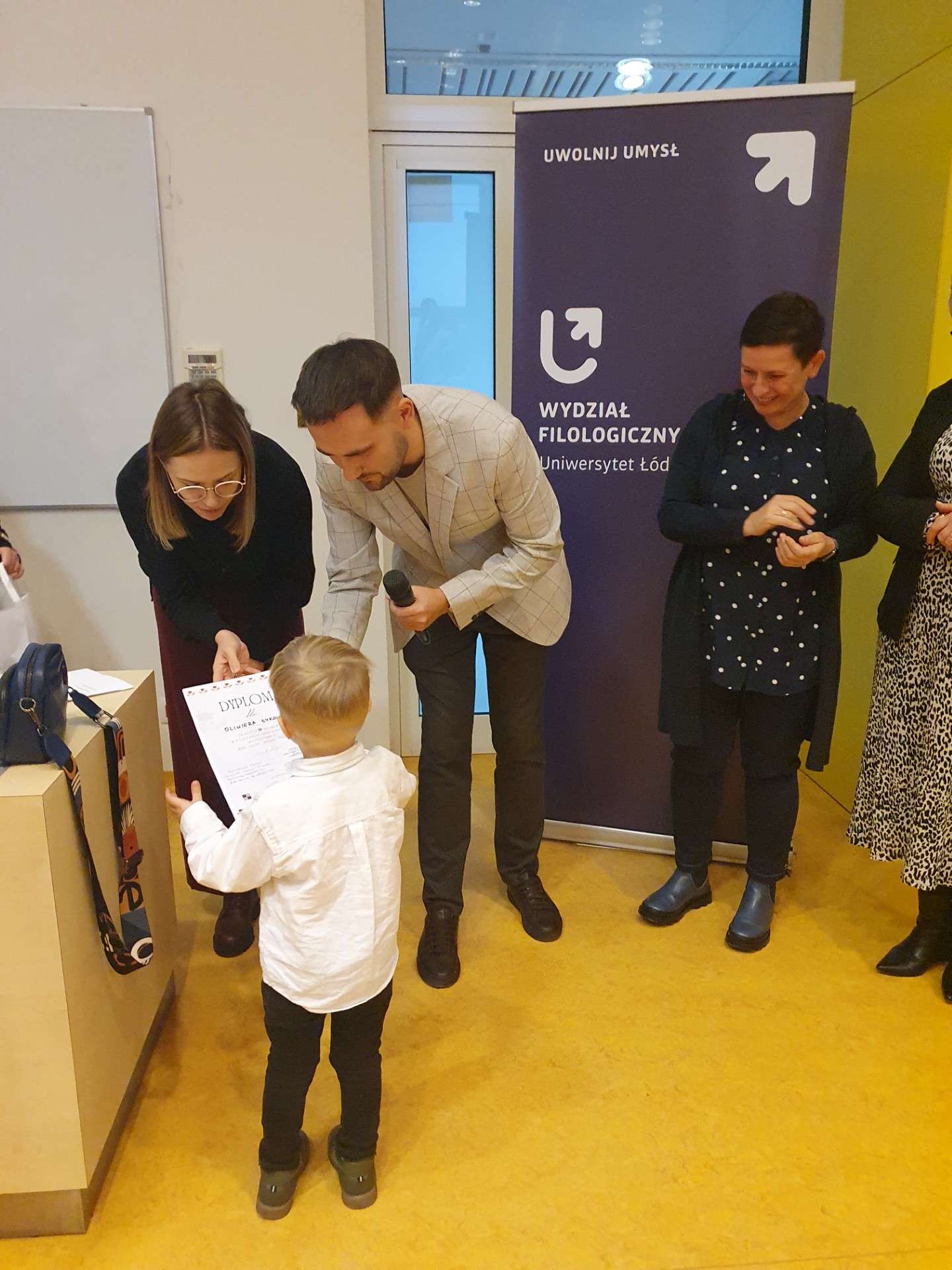 Z radością informujemy, że nasi wychowankowie w dniu 28 listopada wzięli udział w konkursie logopedycznym organizowanym we współpracy z Uniwersytetem Łódzkim – Wydziałem Filologicznym oraz Przedszkolem Miejskim nr 109 w Łodzi. Naszą placówkę reprezentowało dwóch chłopców, którzy osiągnęli wspaniałe wyniki: