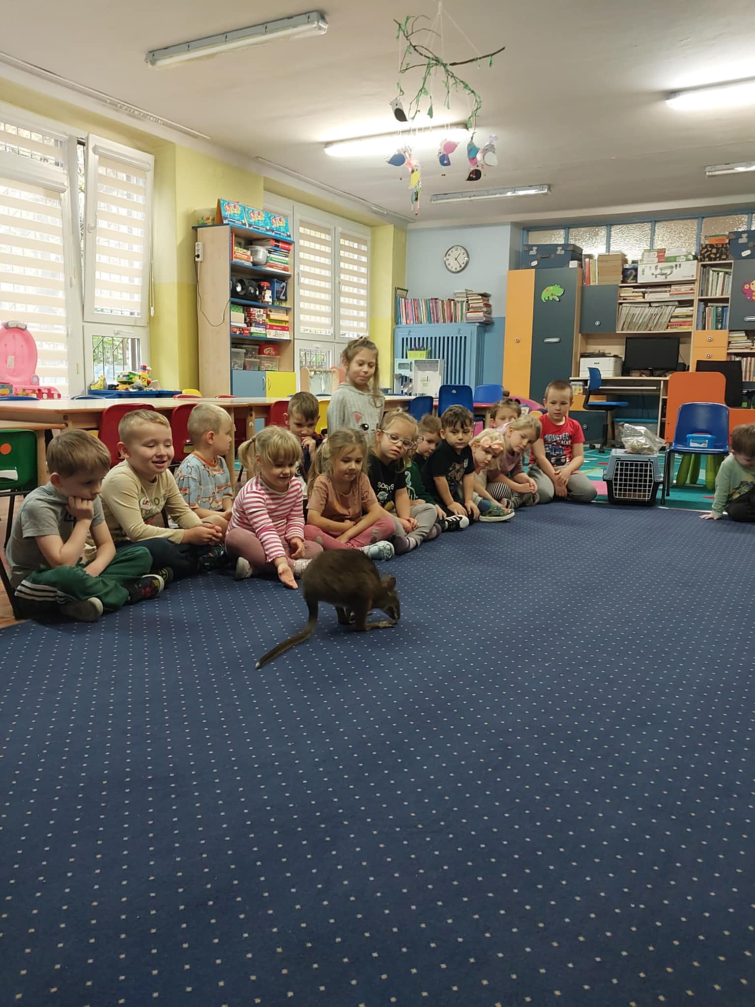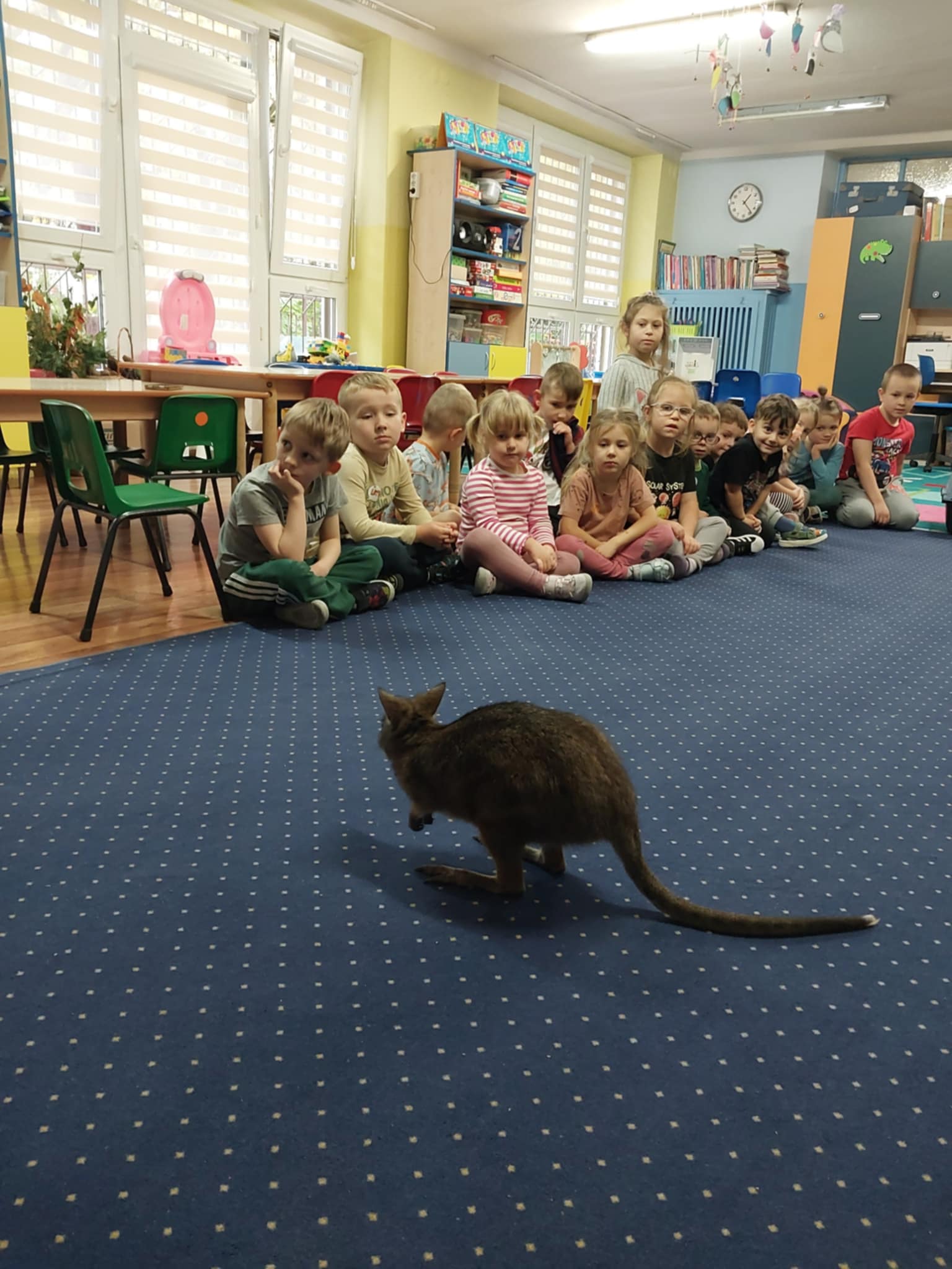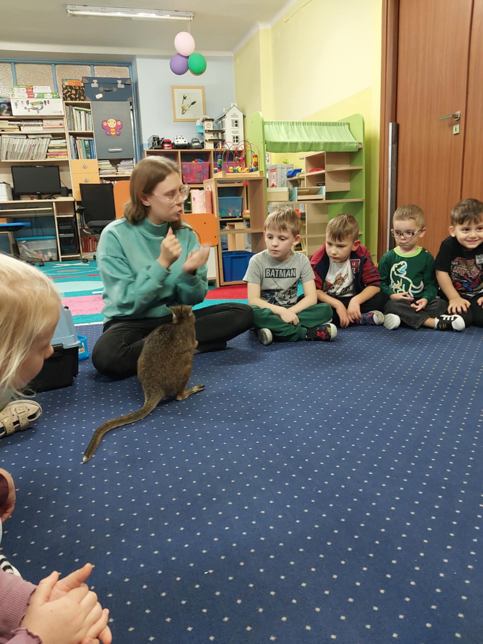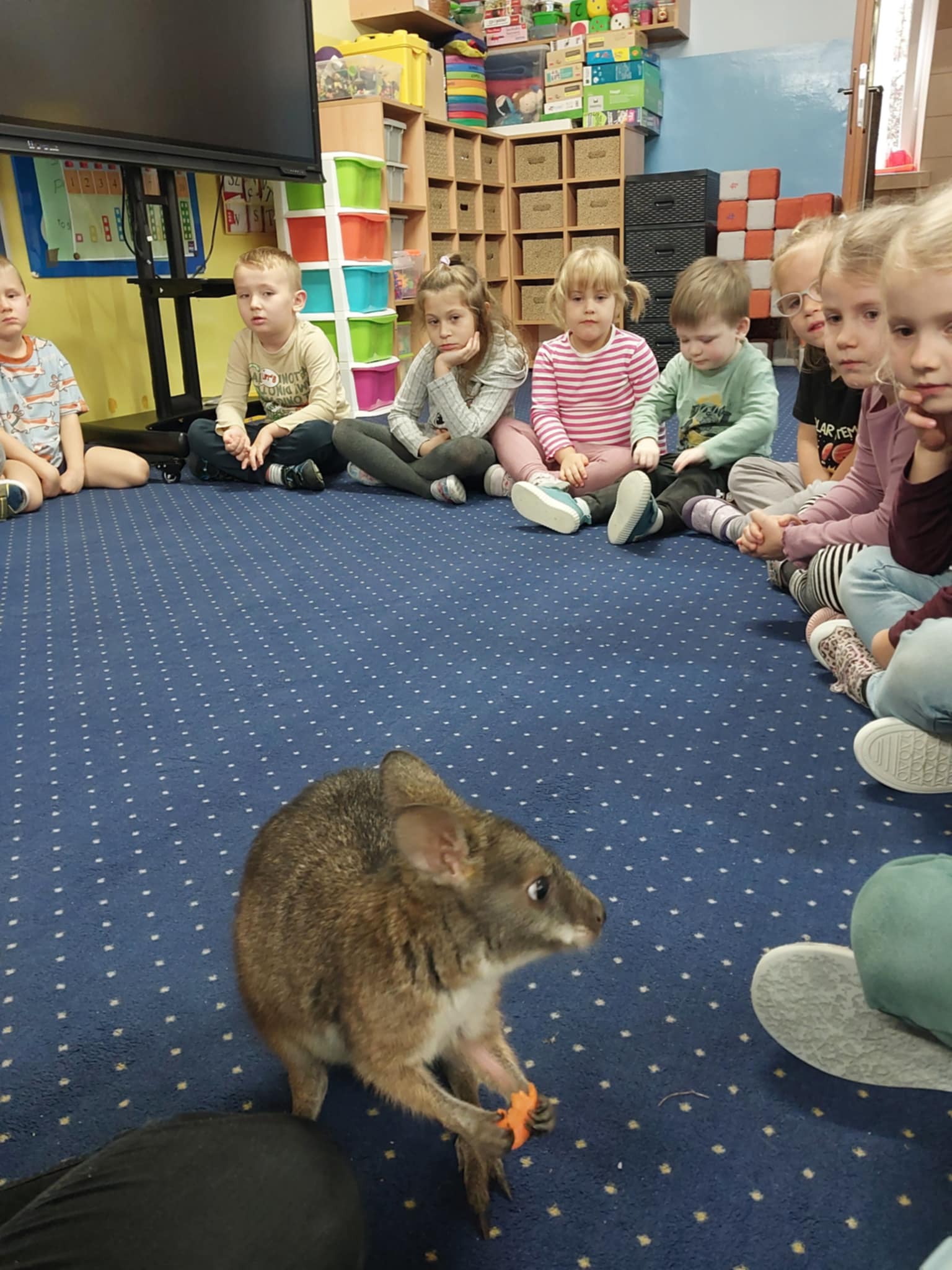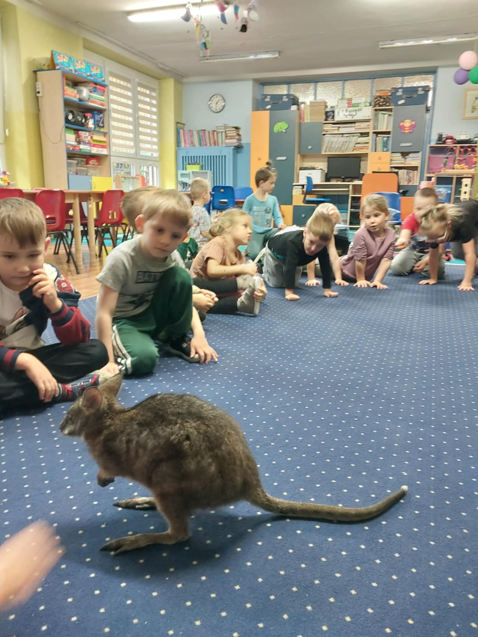 Dzieci miały wyjątkową okazję zobaczyć z bliska kangura i dowiedzieć się wielu ciekawostek na temat jego życia i środowiska naturalnego.