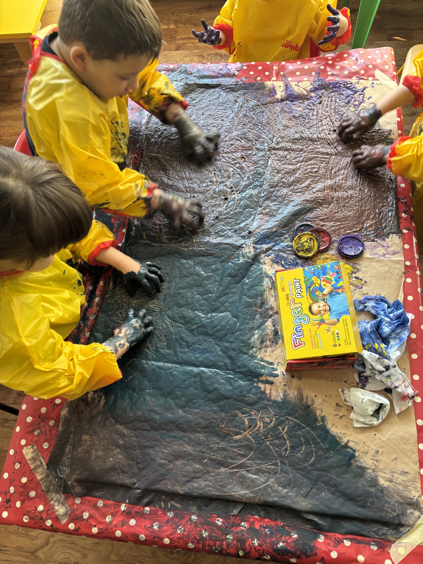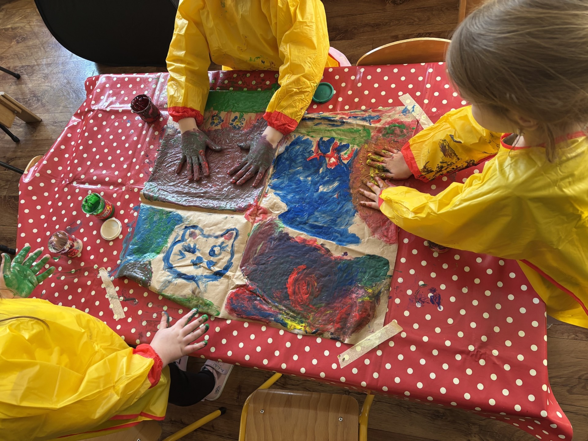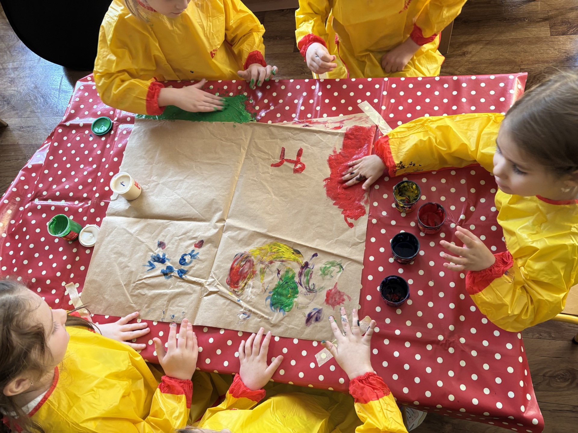 W tym tygodniu poznawaliśmy zawody ludzi. Szyliśmy ubrania jak krawcowa, pisaliśmy list do koleżanki i staliśmy się prawdziwymi artystami malując rękami na dużych formatach.