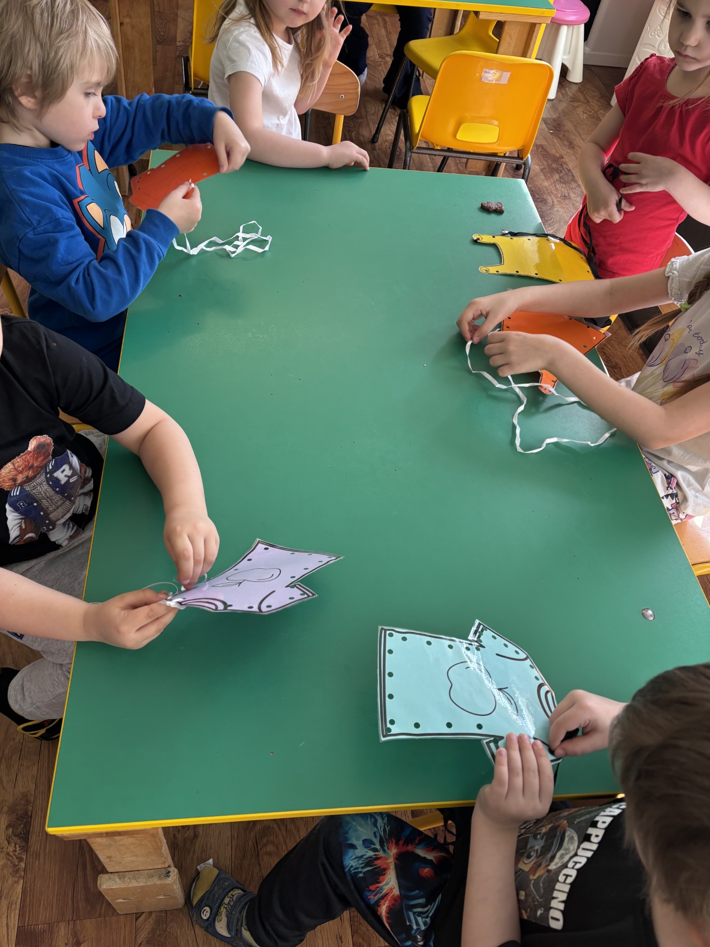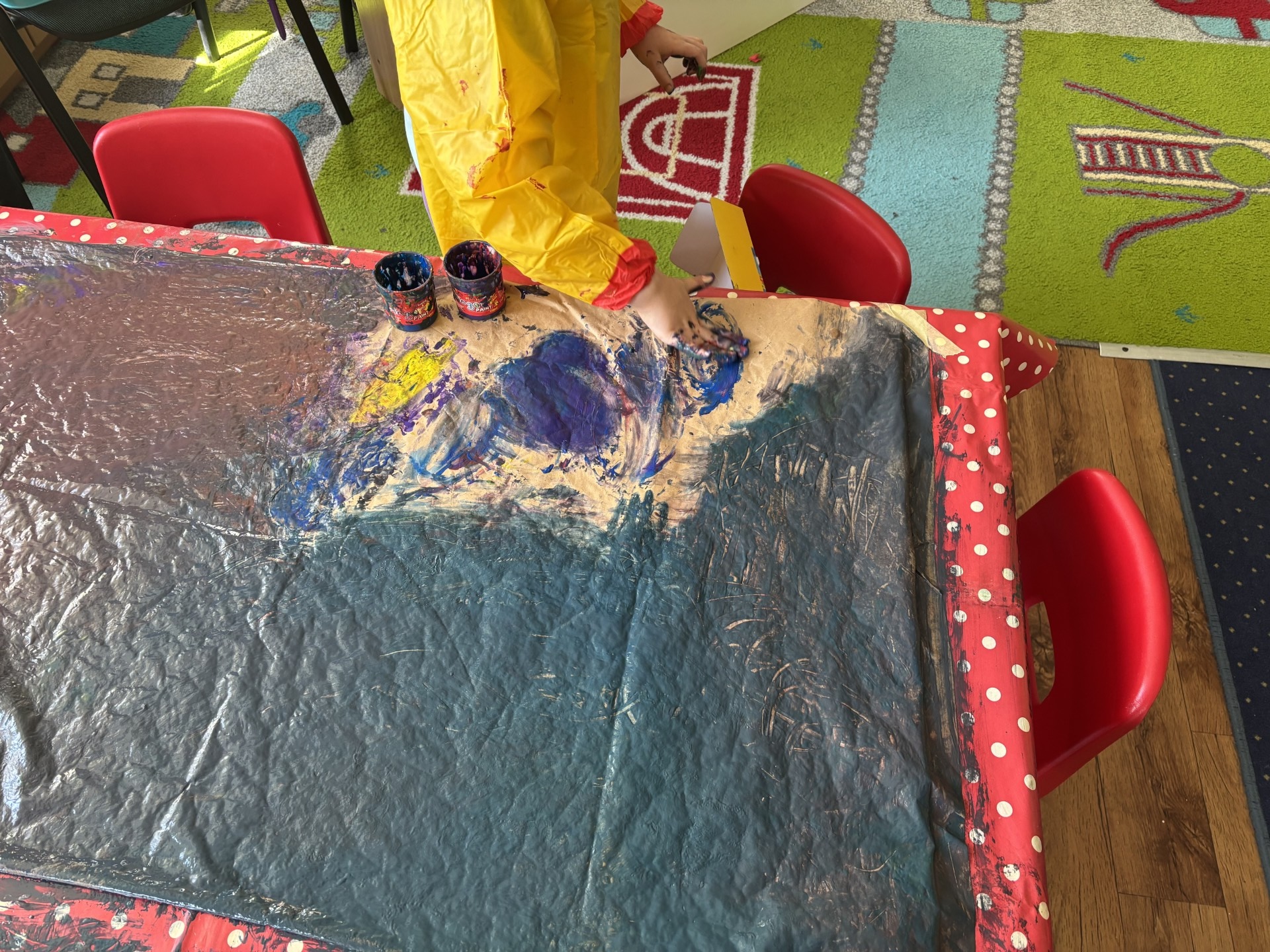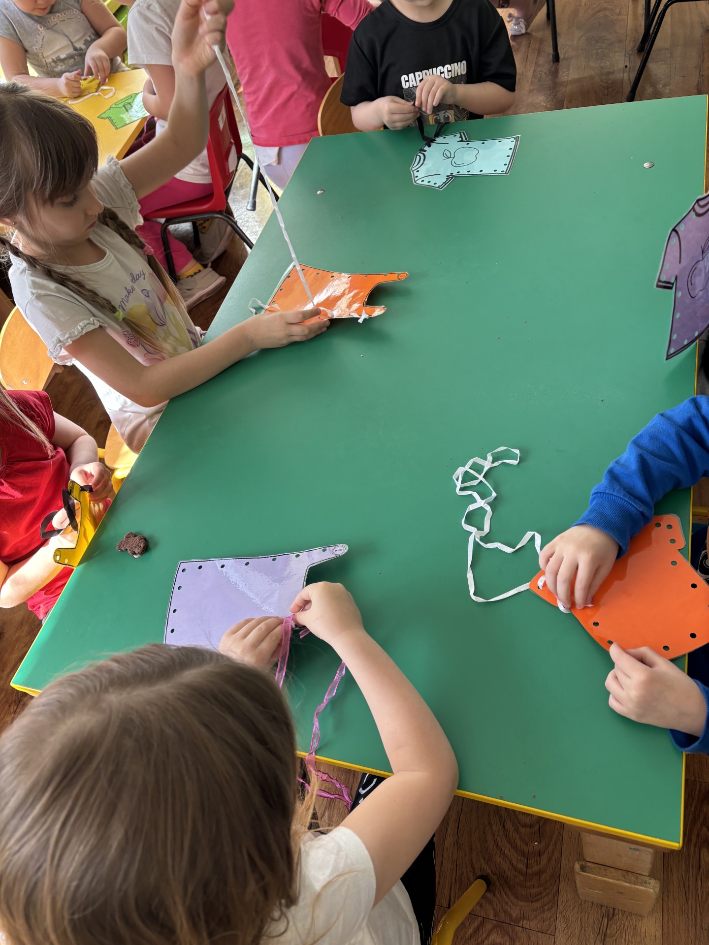W tym tygodniu poznawaliśmy zawody ludzi. Szyliśmy ubrania jak krawcowa, pisaliśmy list do koleżanki i staliśmy się prawdziwymi artystami malując rękami na dużych formatach.