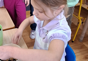 W bieżącym tygodniu wspólnie zasadziliśmy cebulkę i zasialiśmy owies, który wykorzystamy do świątecznej dekoracji w klasie.