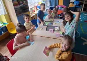 W naszej grupie podtrzymujemy tradycje wysyłania kartek świątecznych. W związku z tym dzieci przygotowują kartki świąteczne, które następnie prześlemy do innego przedszkola.