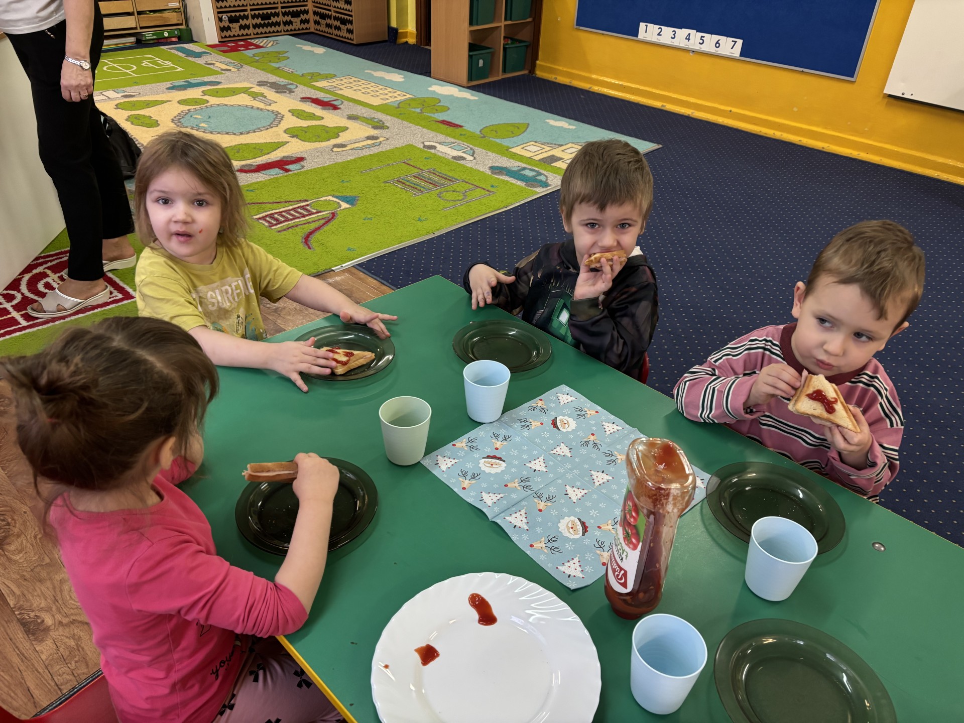 W czwartek przygotowaliśmy sobie śniadanie z wykorzystaniem urządzeń elektrycznych - tostera i czajnika.