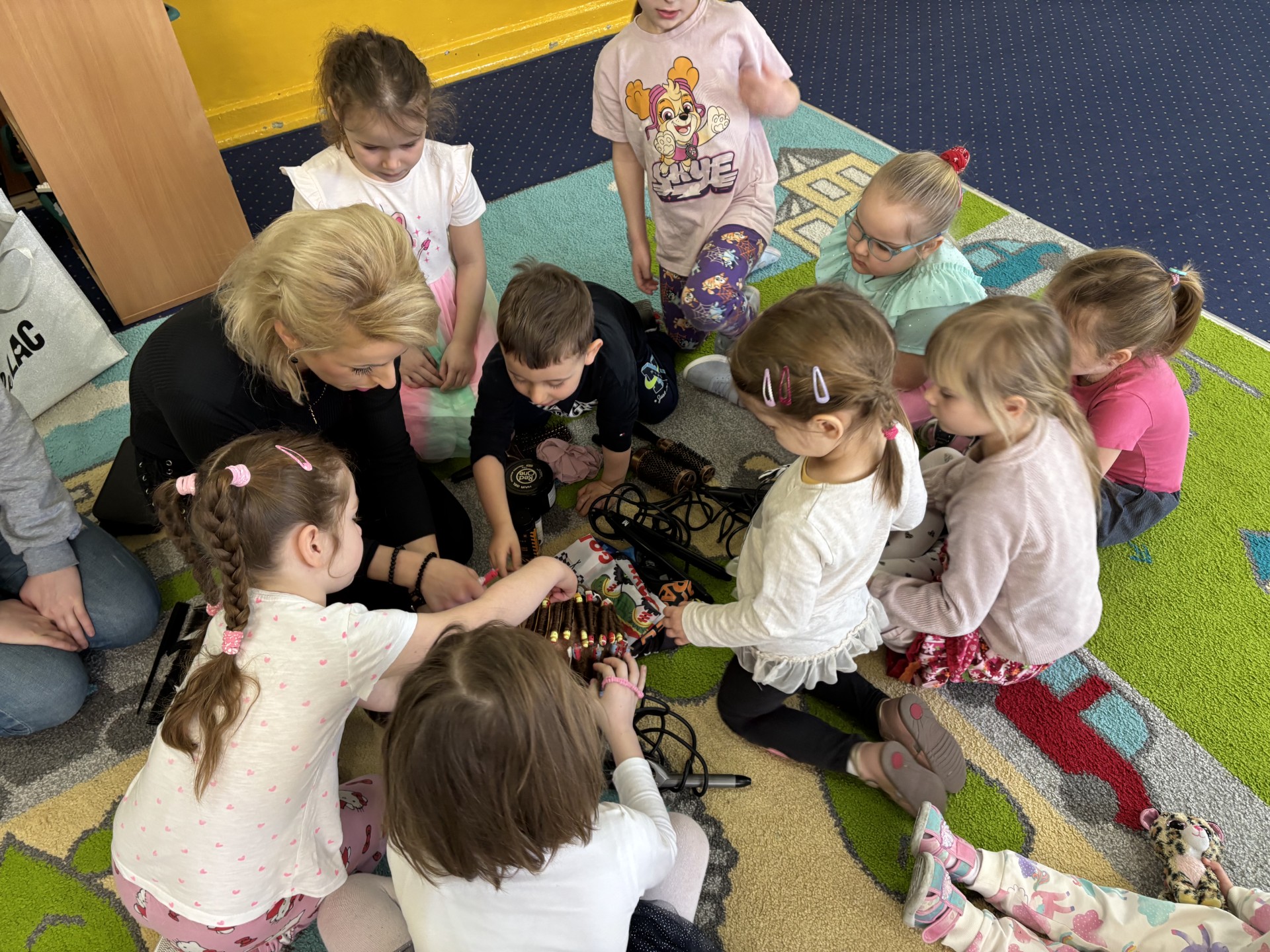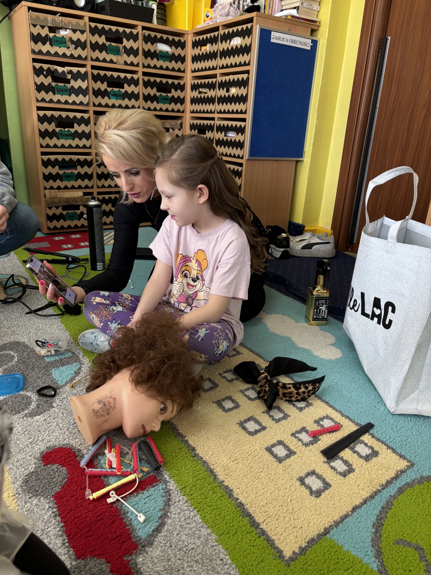Dzisiaj odwiedziła nas pani fryzjerka. Zaprezentowała główkę treningową i akcesoria niezbędne w swojej pracy. Wraz z uczennicą uczesały wszystkie dziewczynki w grupie. Bardzo dziękujemy za wizytę!
