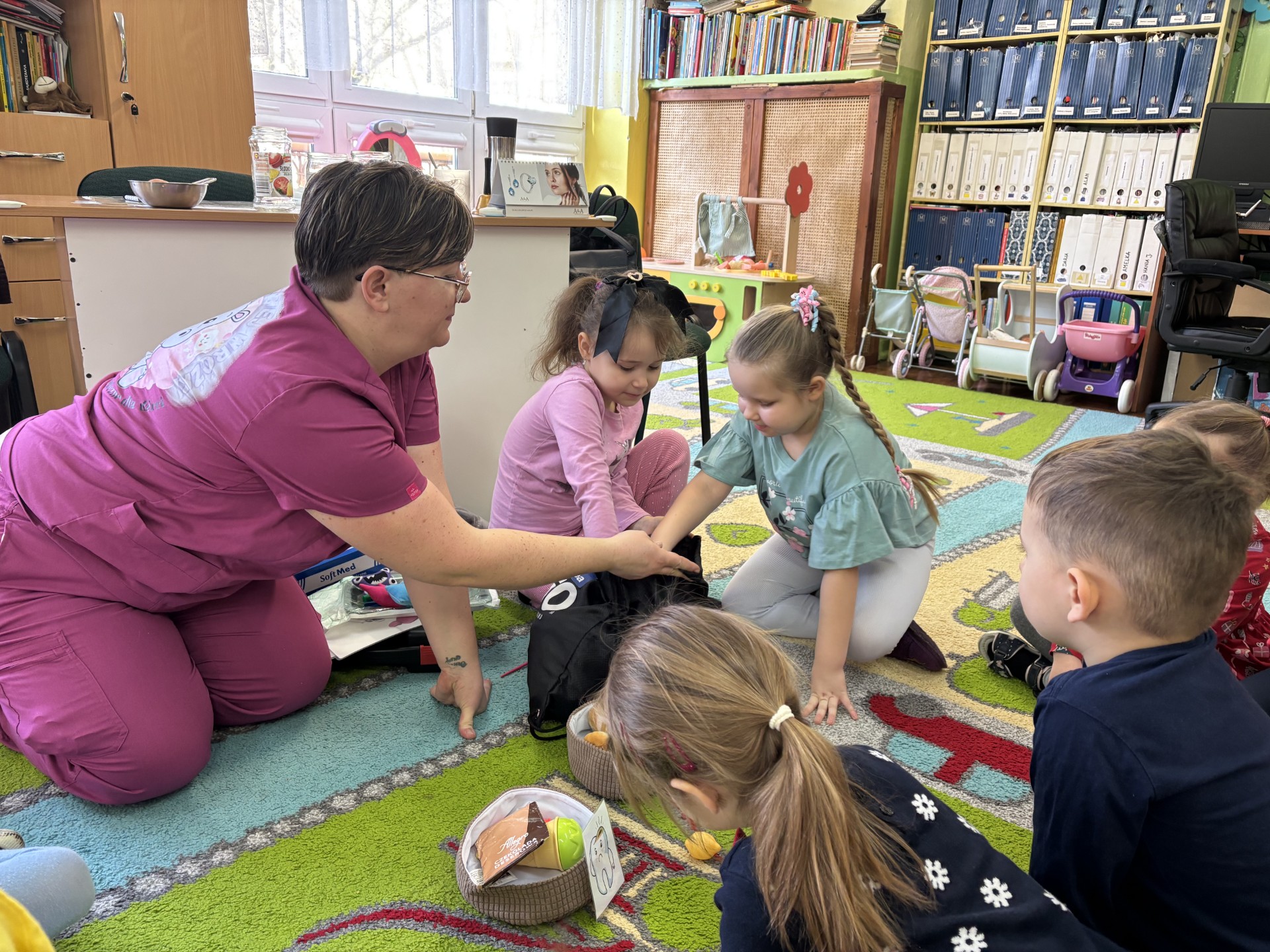 05 marca odwiedziła nas pani stomatolog z "Akademii Zębowej wróżki". Dzieci dowiedziały się wielu ciekawych wiadomości na temat higieny jamy ustnej, wykonały własne magnesy w kształcie ząbka. To był bardzo ciekawy dzień!
