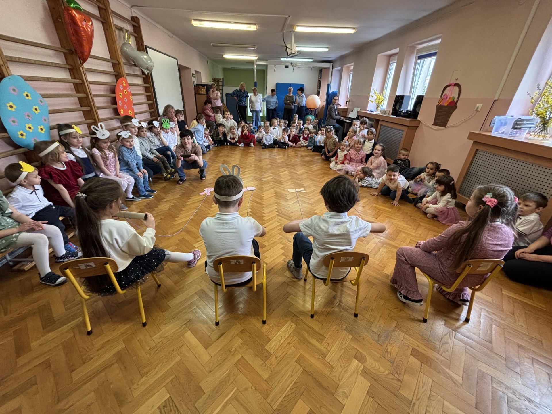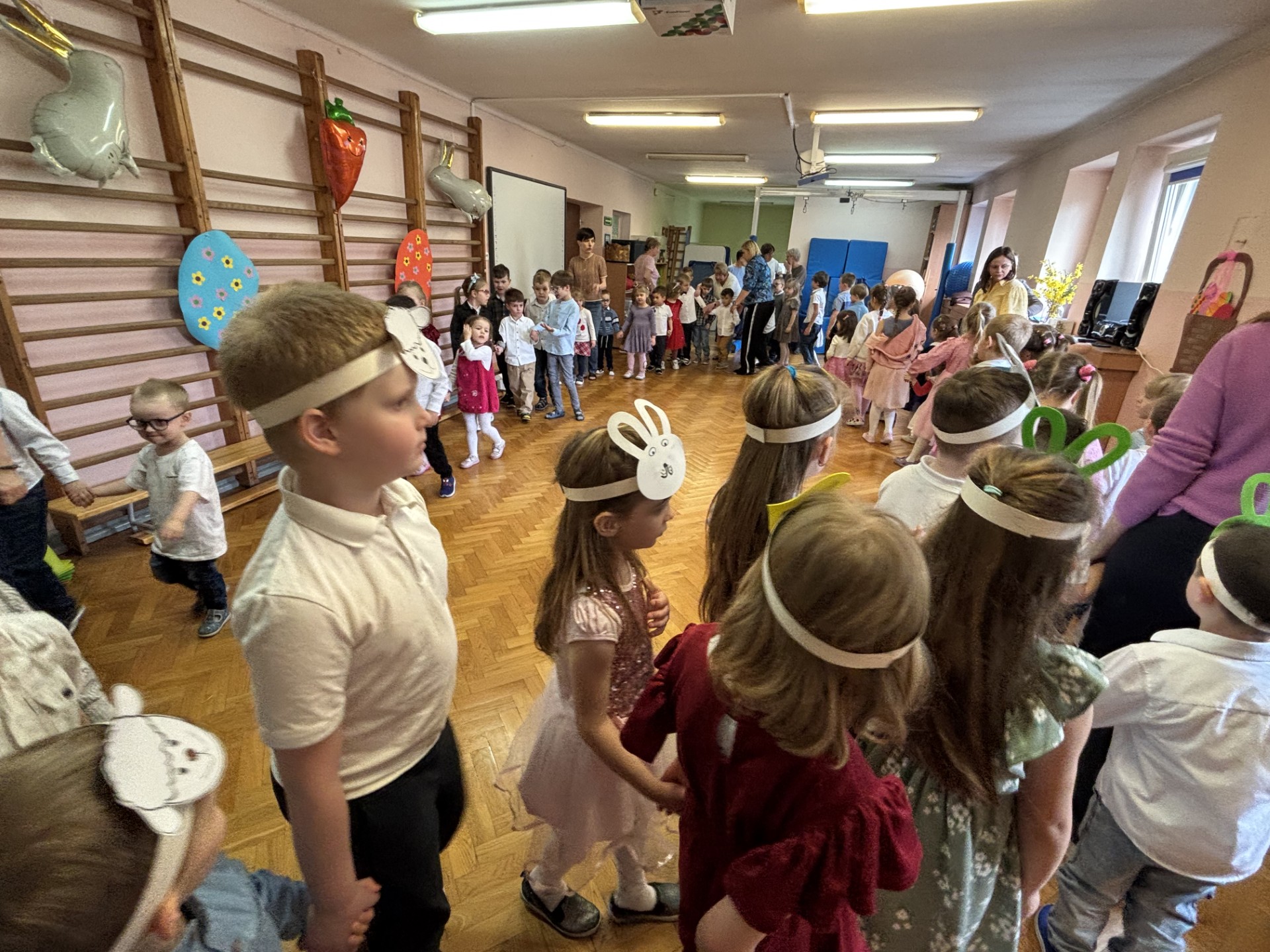 31 marca wszystkie dzieci spotkały się na sali gimnastycznej z okazji zbliżających się świąt wielkanocnych. Każda z grup zaprezentowała wielkanocną piosenkę, wspólnie bawiliśmy się przy wielkanocnych konkurencjach. Rozstrzygnięty został również konkurs plastyczny "Wielkanocny zajączek".