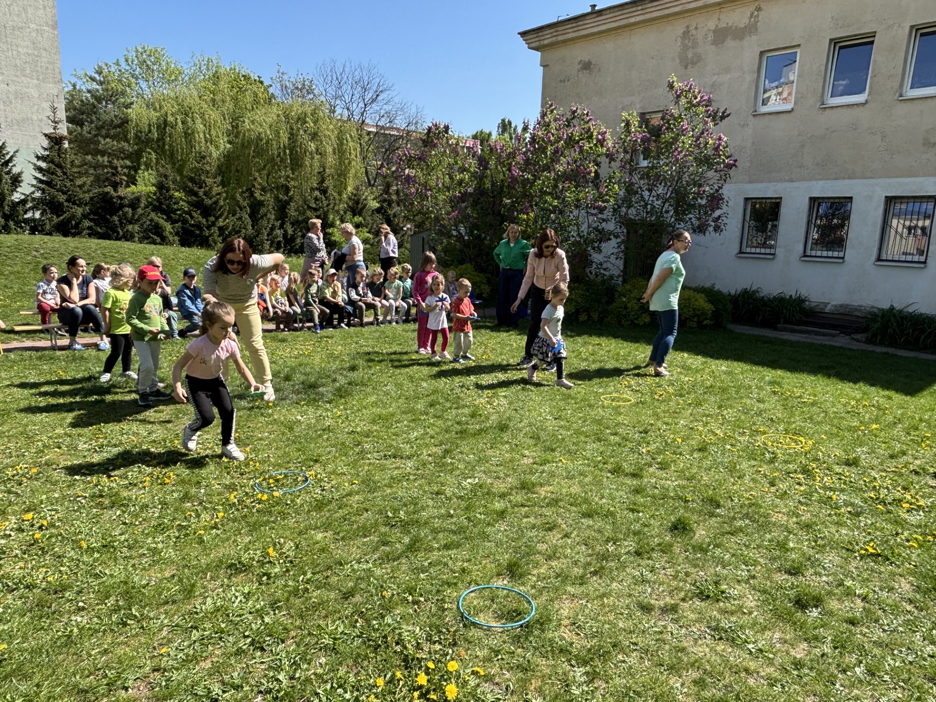30 kwietnia wszyscy spotkaliśmy się w ogrodzie i uczestniczyliśmy w "Wiosennych zabawach sportowych". Były konkurencje sportowe i zabawa przy muzyce. To był miło i aktywnie spędzony czas.