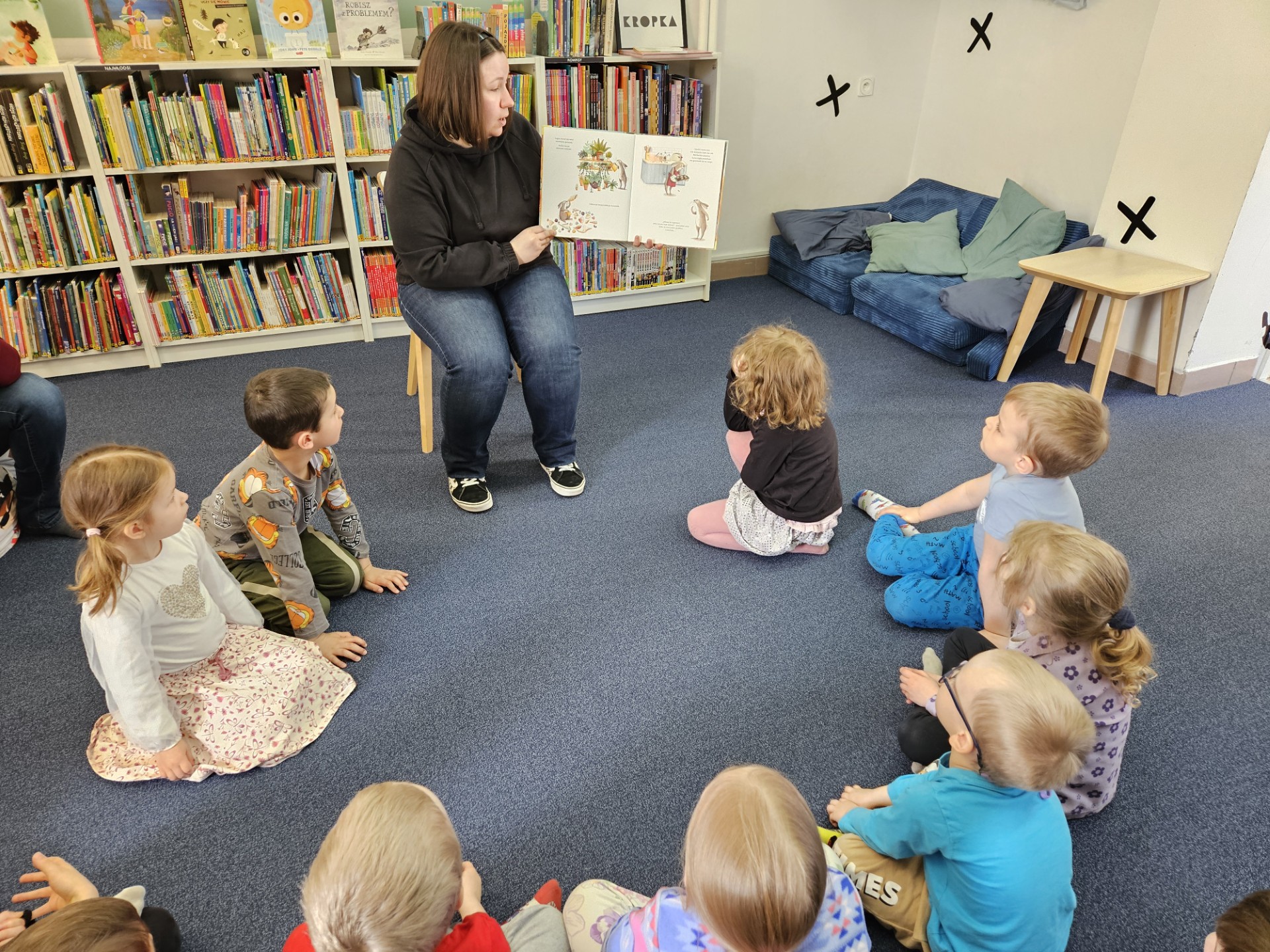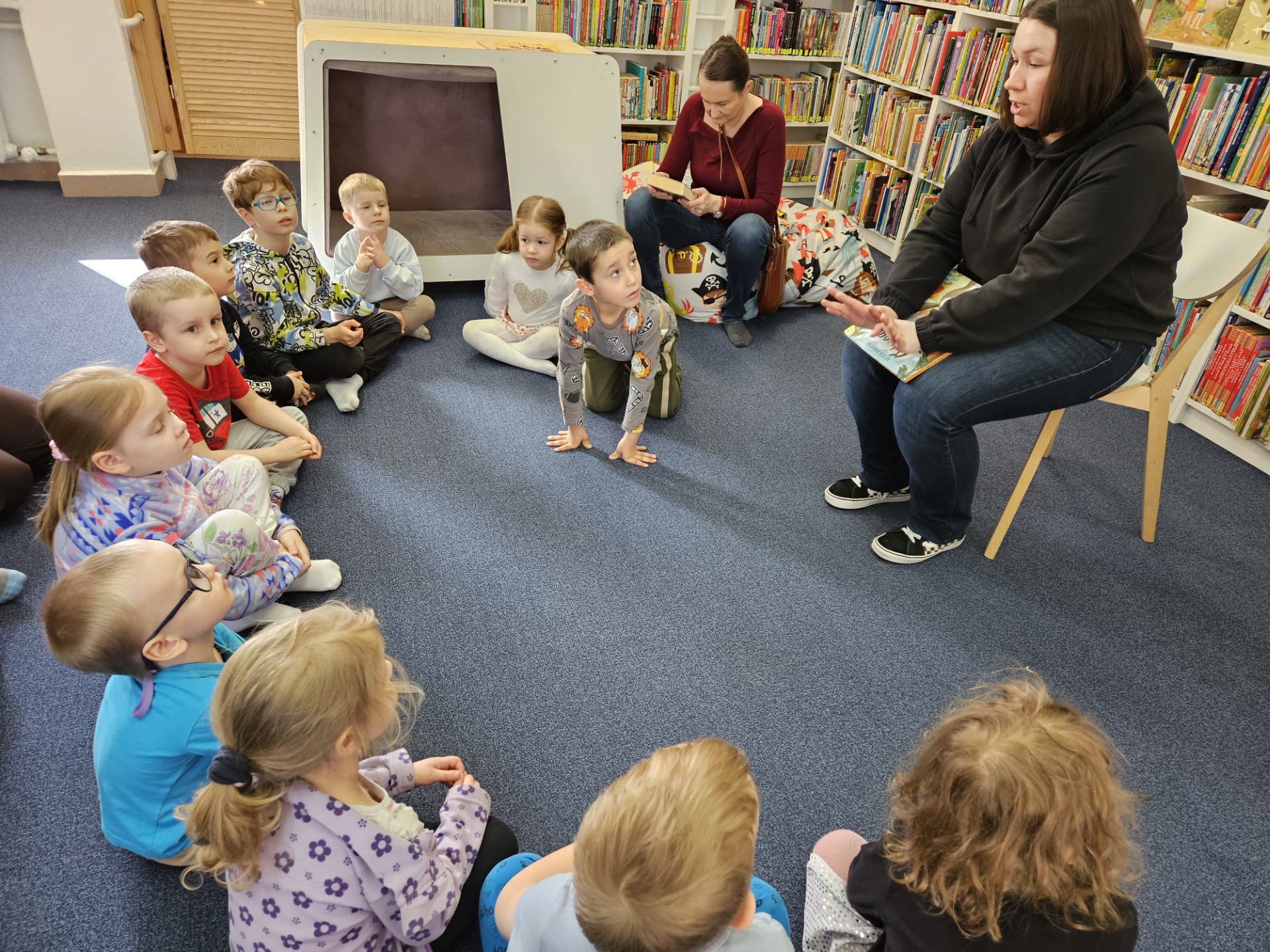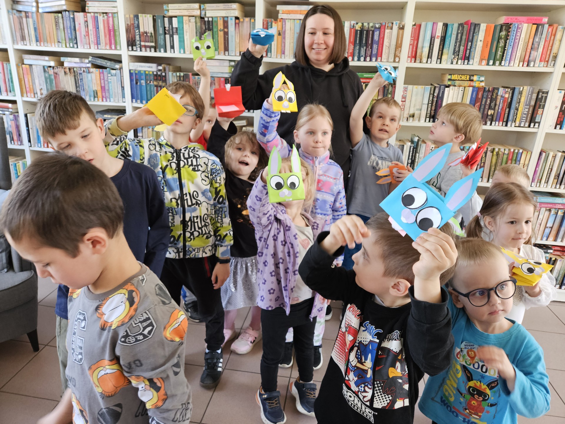 1 kwietnia dzieci z grupy lll odwiedziły Bibliotekę TRAF. Poznały zasady korzystania z biblioteki oraz zwyczaje związane ze zbliżającym się Świętami Wielkanocnymi. Na koniec spotkania wykonały papierowe zajączki techniką origami.