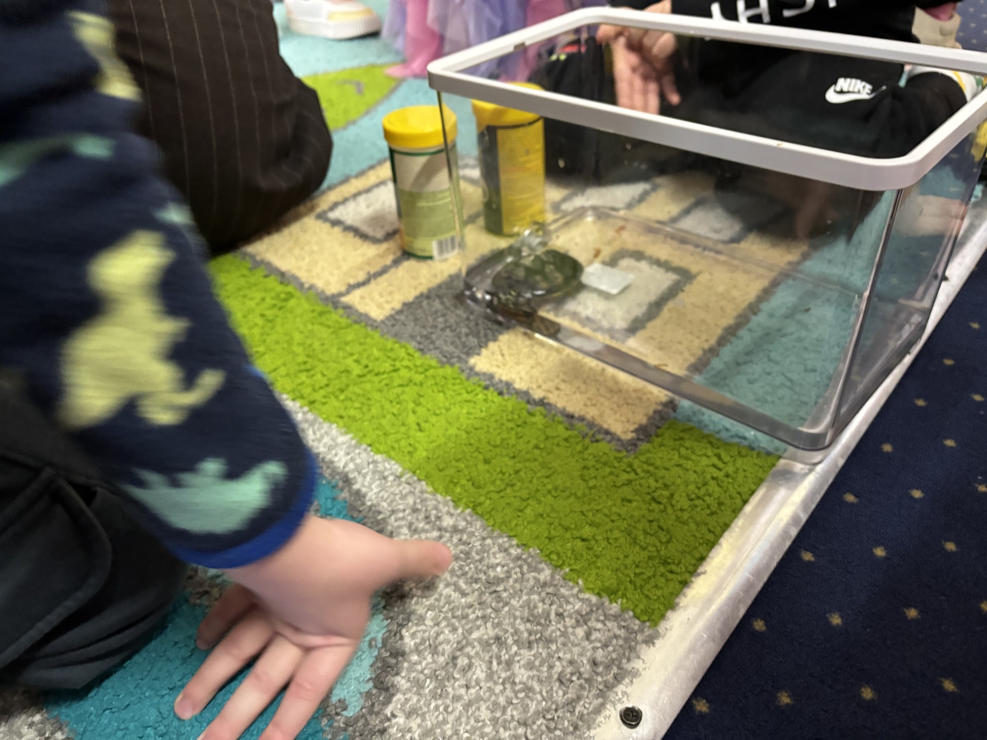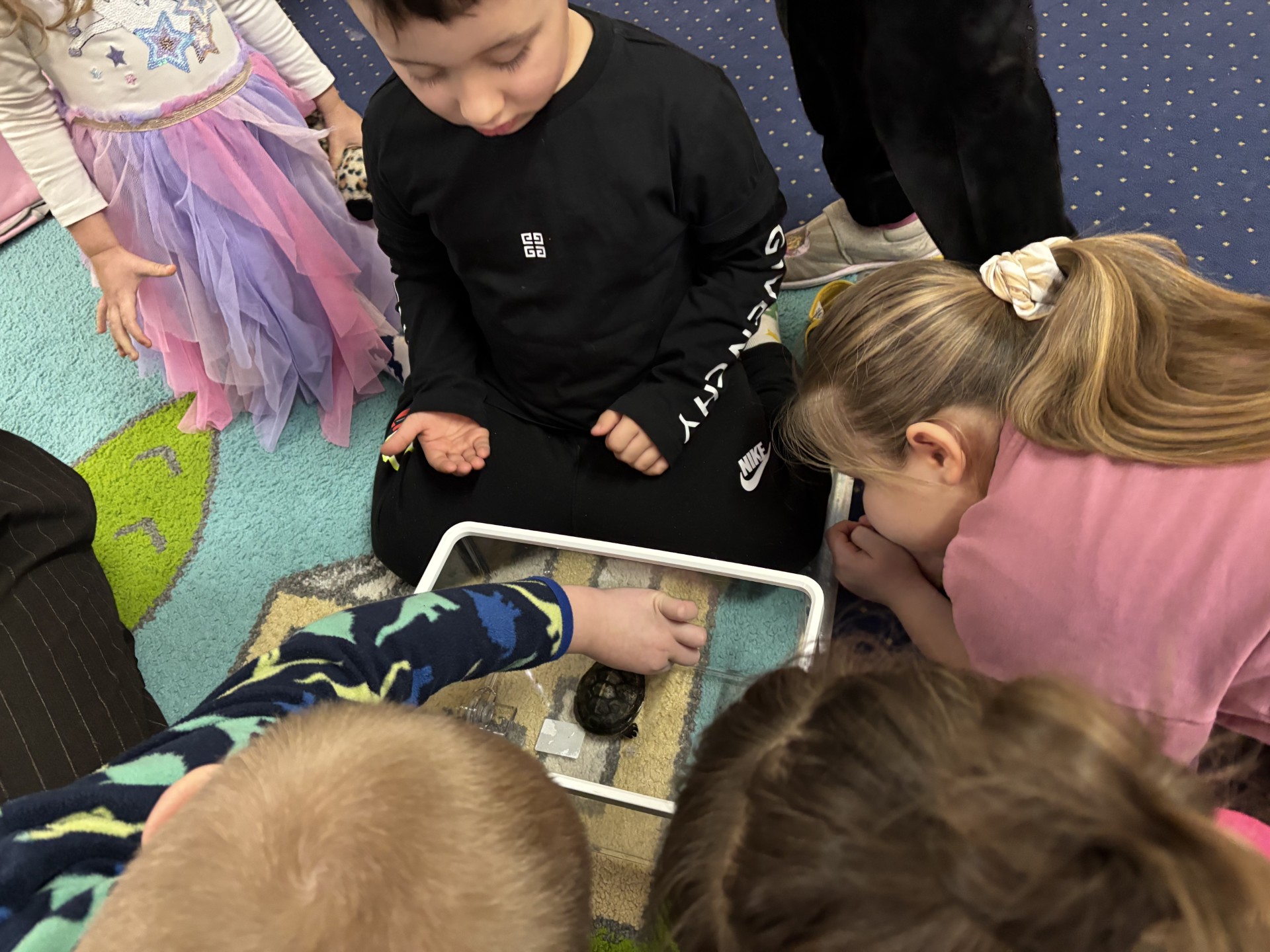 18 stycznia odwiedził nas żółw - Groszek. Przyniosła go do nas Pani Kasia z grupy I i opowiedziała dużo ciekawych rzeczy na jego temat. Dziękujemy.